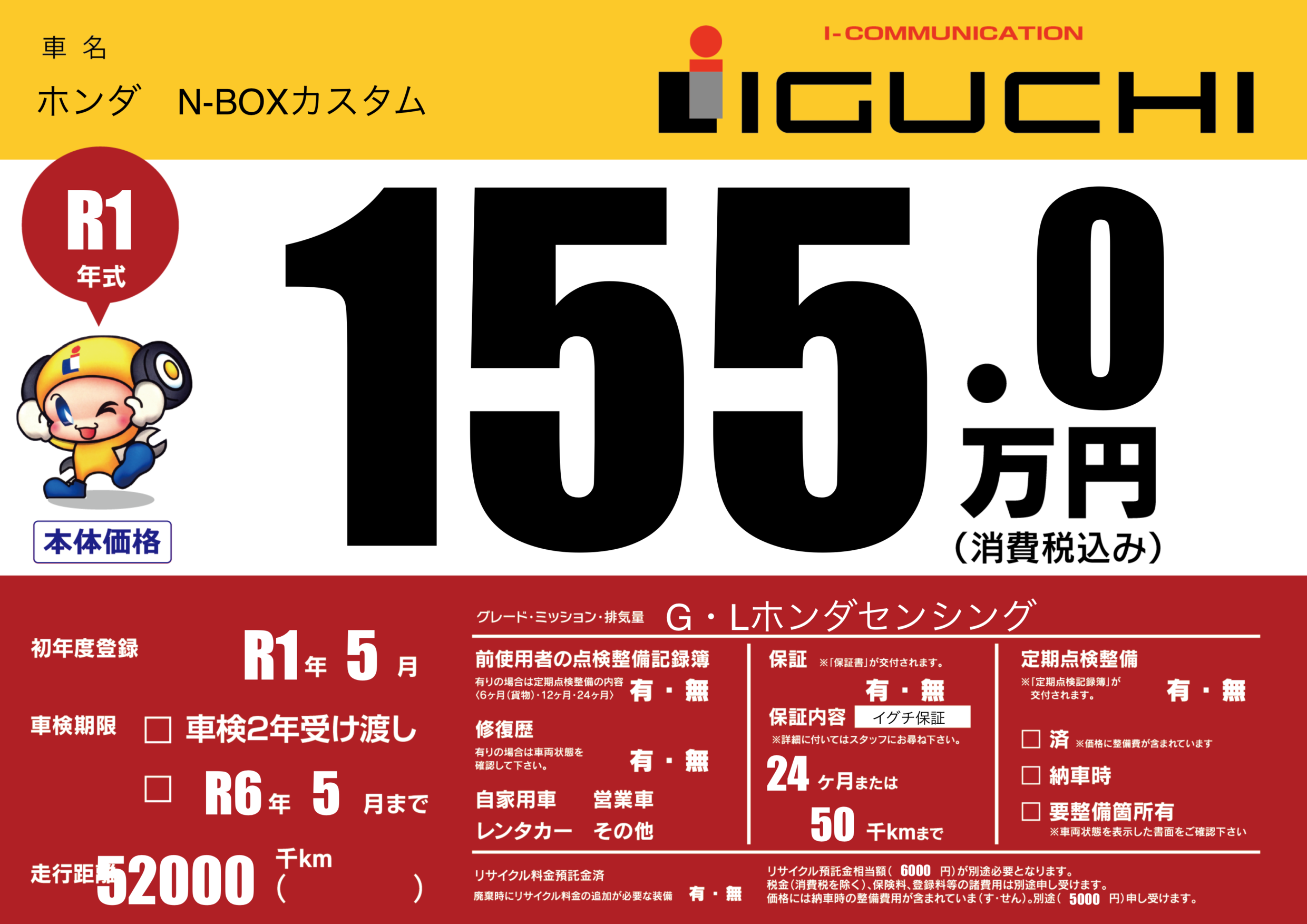 保証なし 保証内容(イグチ保証) 24ヶ月または(50)千kmまで |