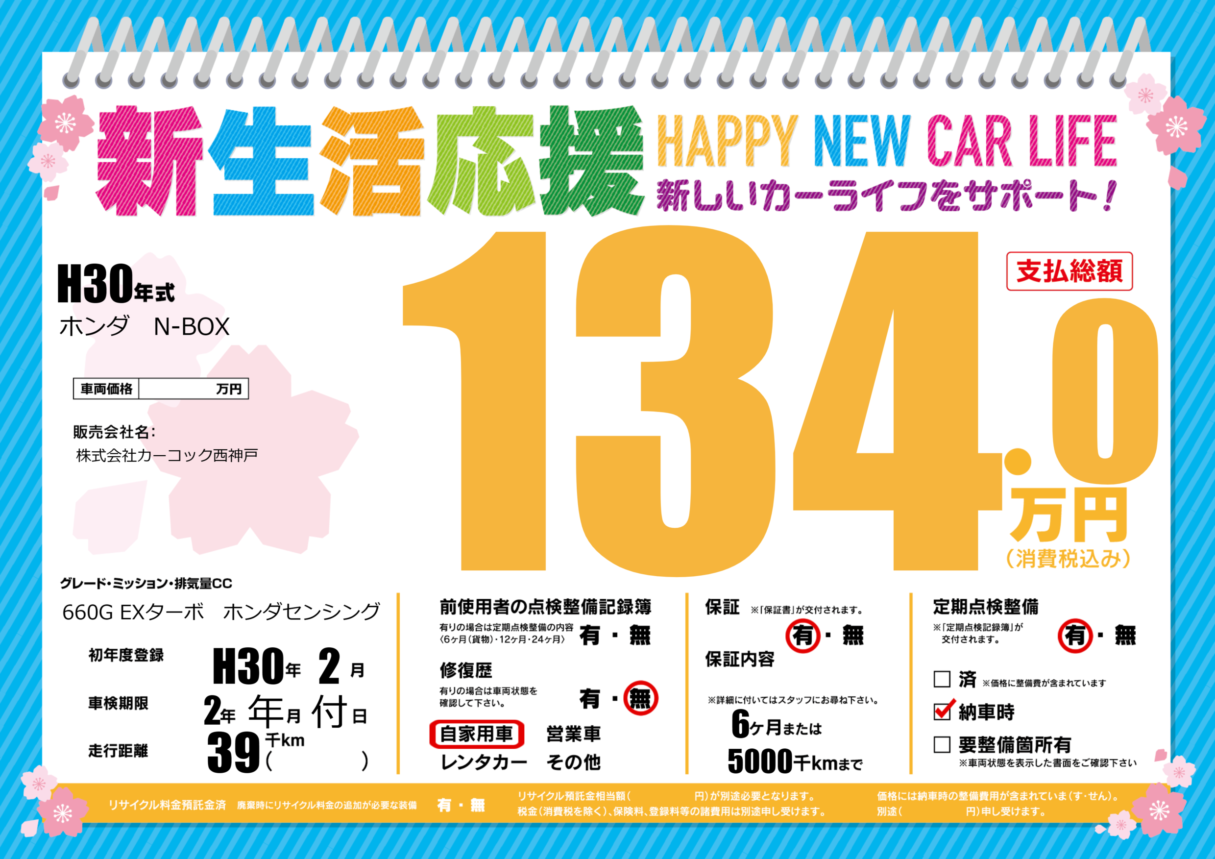 | 定期点検整備 | 定期点検整備あり 納車時あり | ||