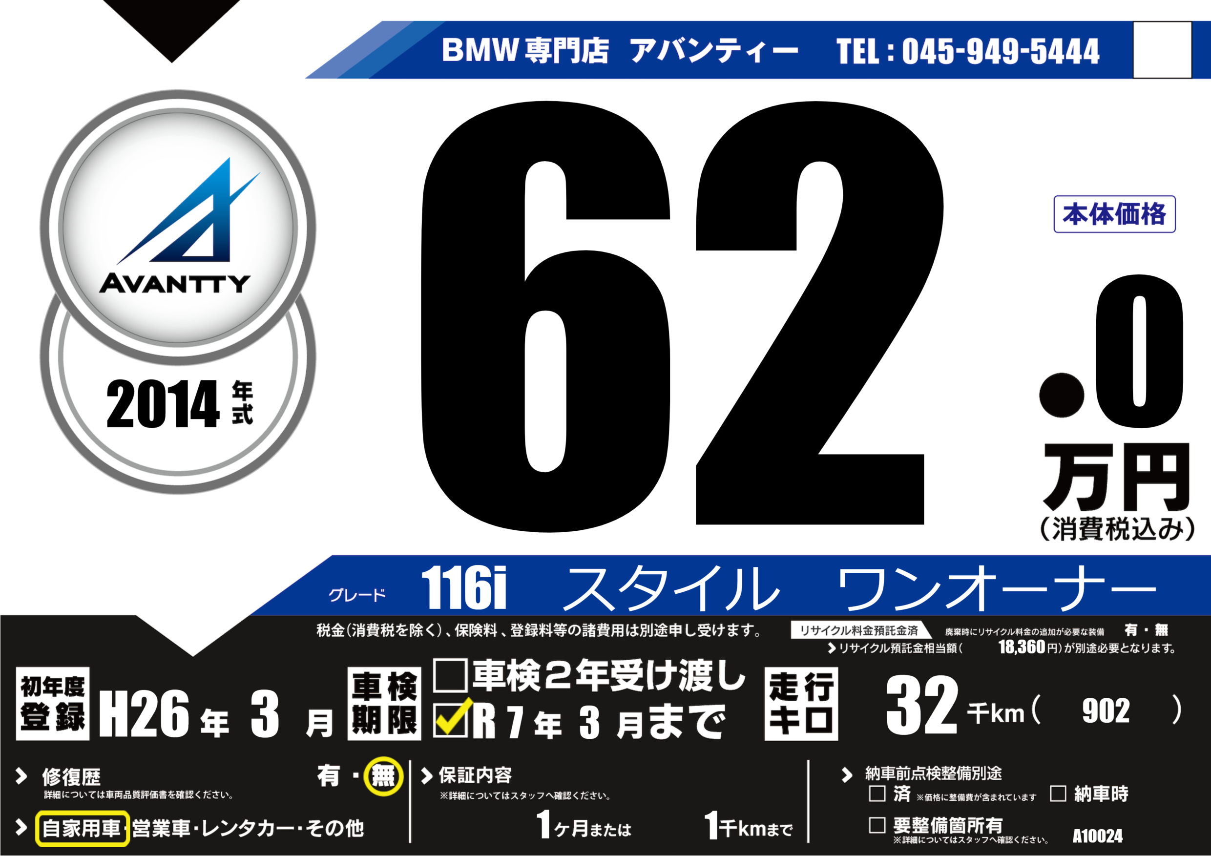 | 走行キロ | 3.2万km | 初年度登録 | H26年3月 |
