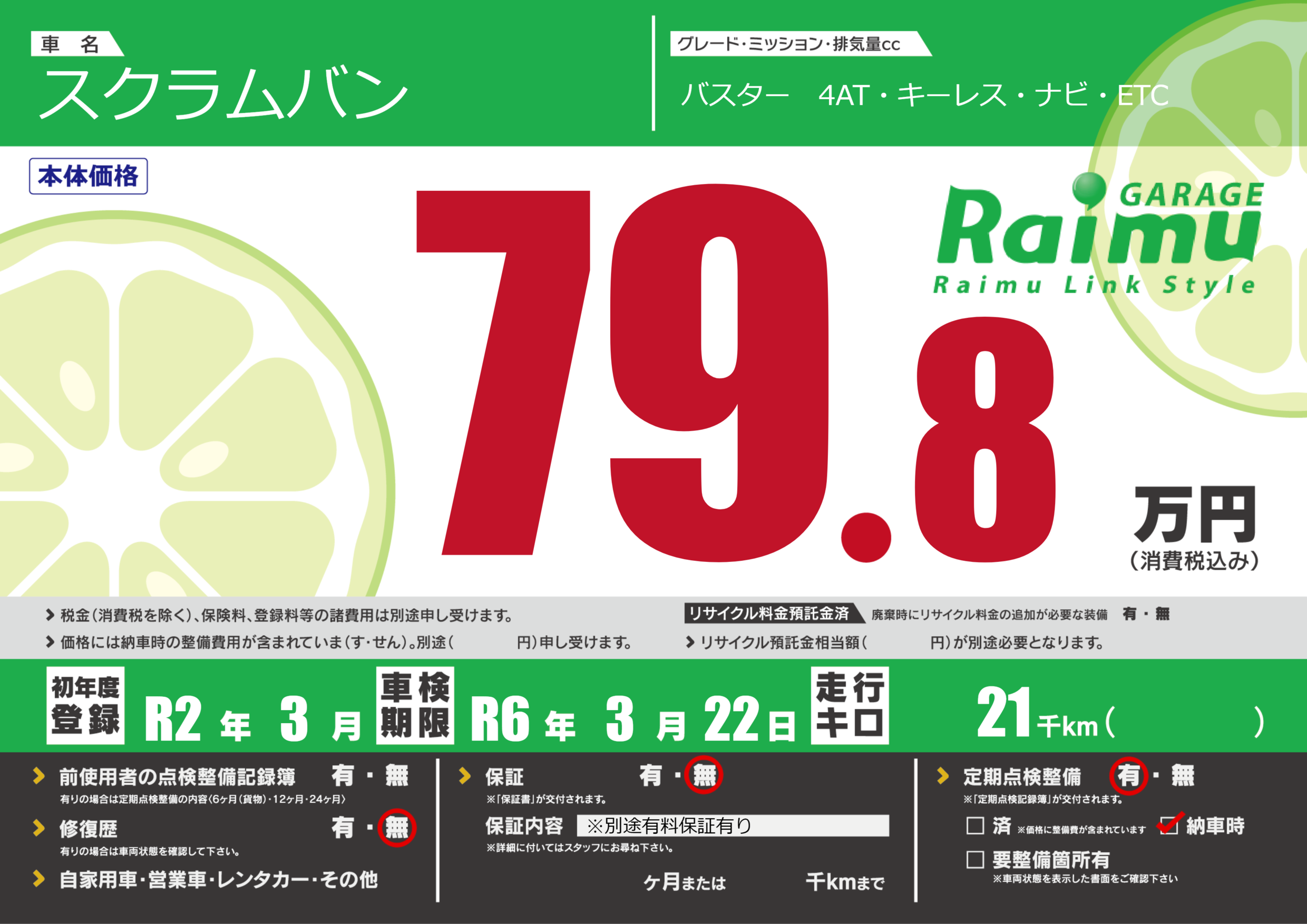 なし | 車検制限 | R6年3月22月 |