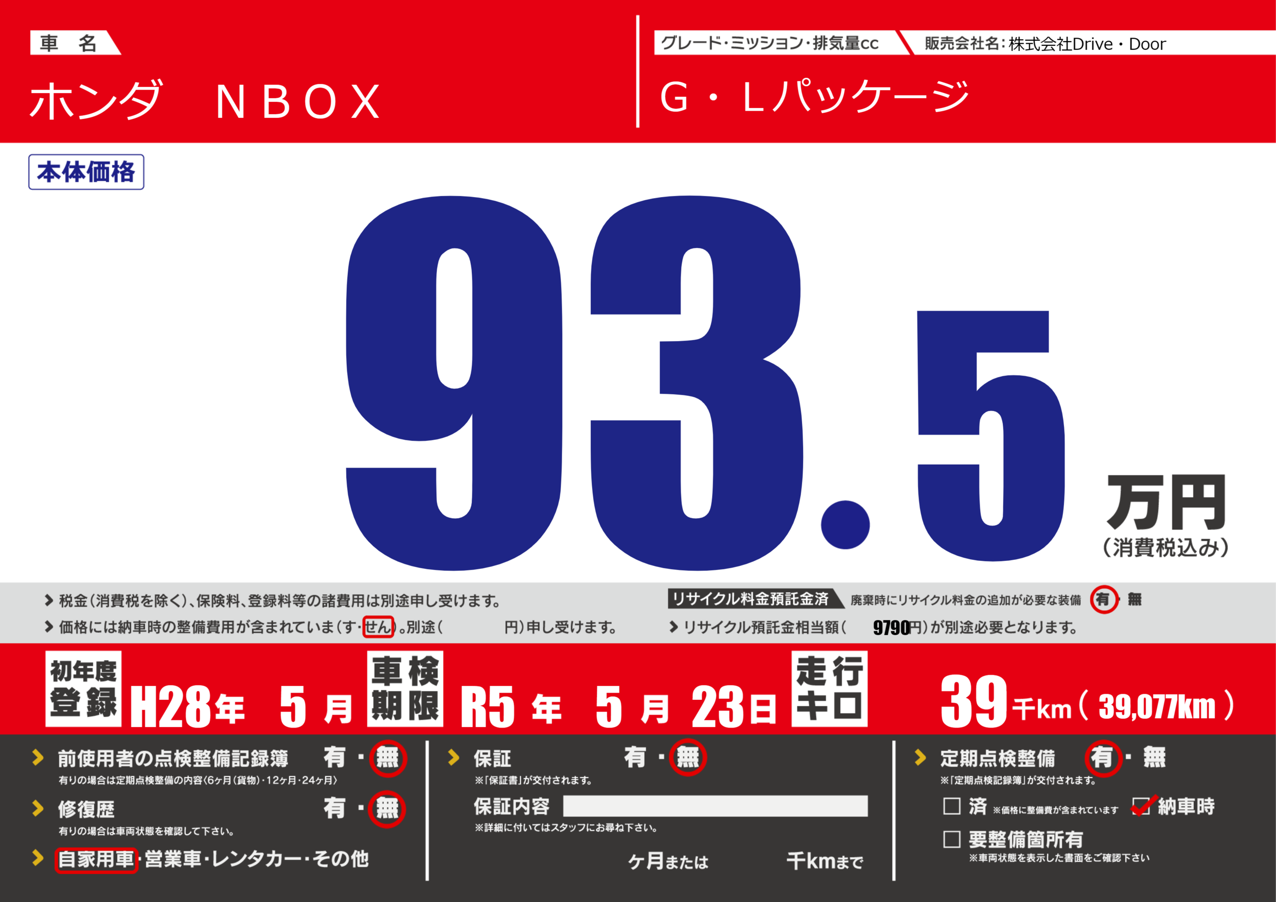なし | 車検制限 | R5年5月23月 |