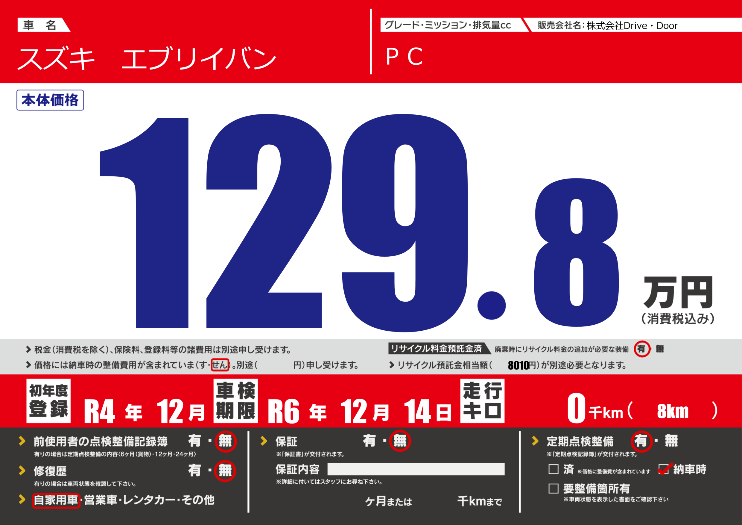 | 走行キロ | - | 初年度登録 | R4年12月 |