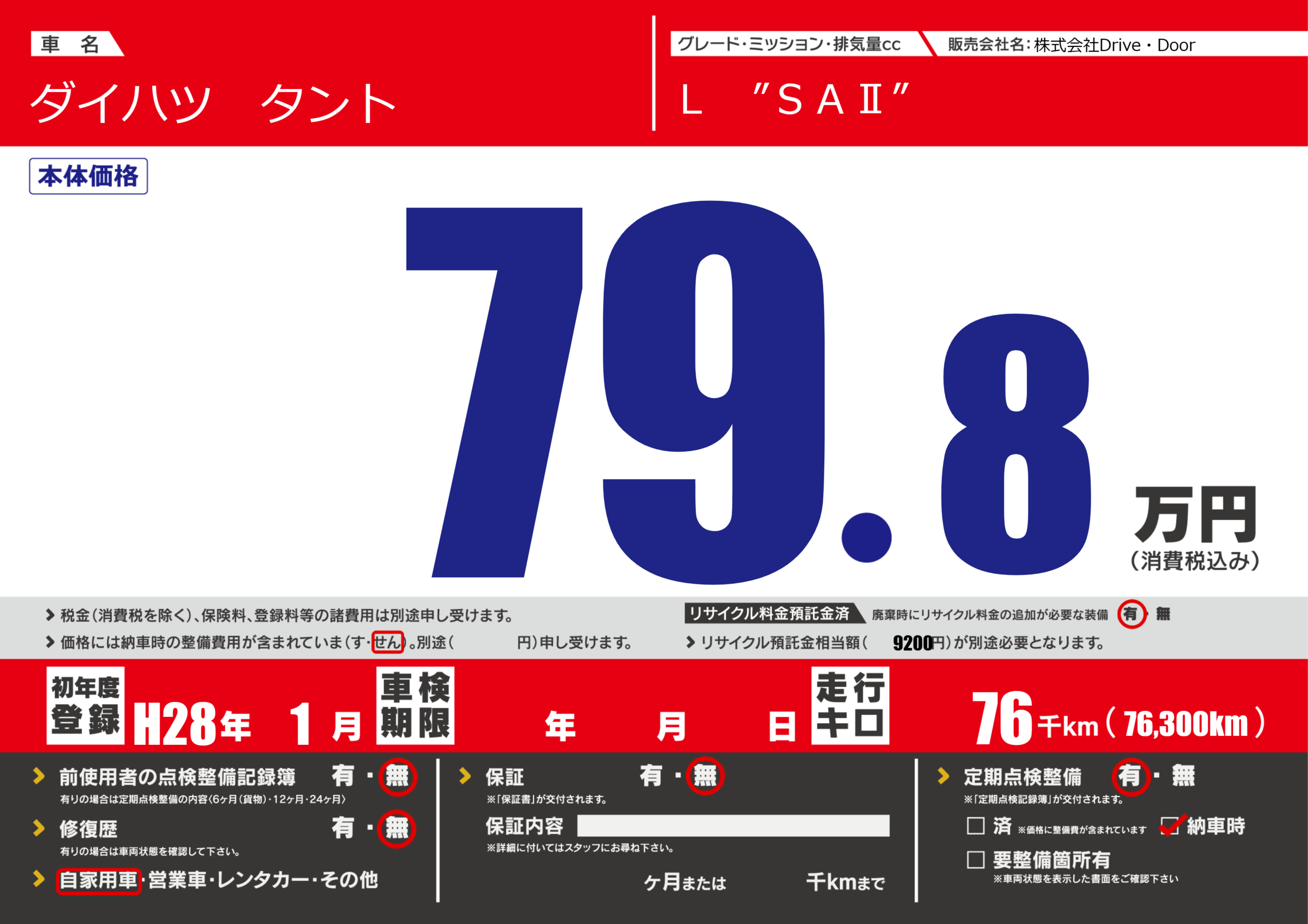 | 走行キロ | 7.6万km | ||