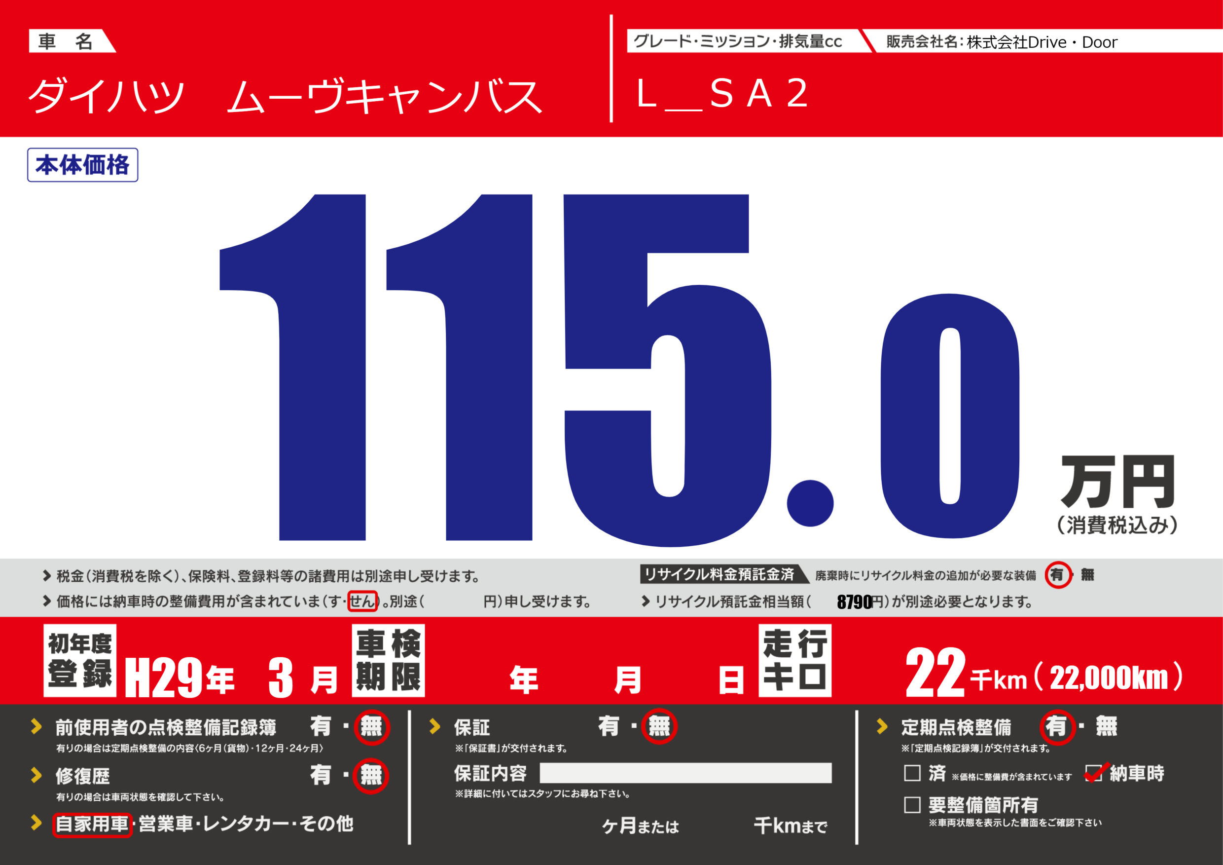 | 車検制限 | - 年 - 月 - 日 | ||