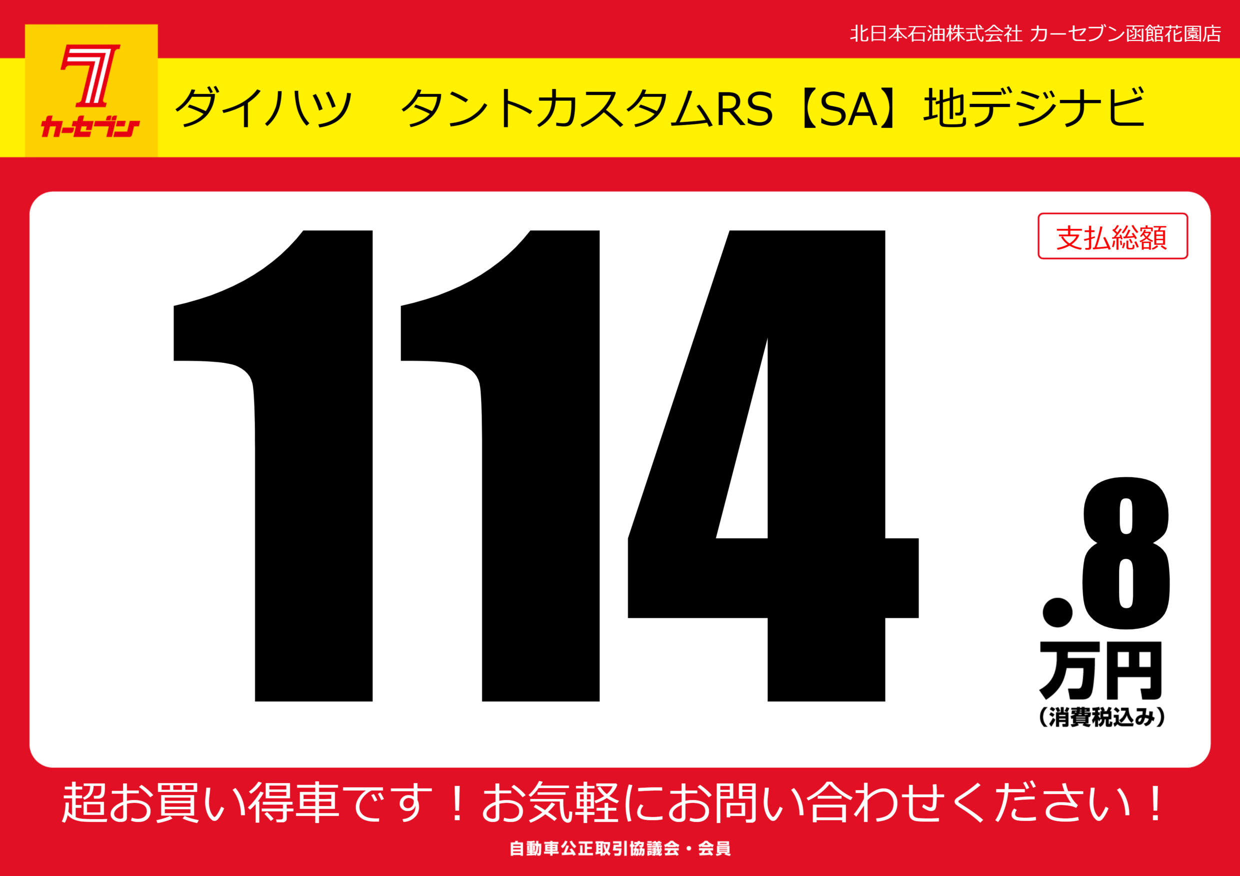 | 車名 | ダイハツ タントカスタムRS【SA】地デジナビ | グレード ミッション 排気量 |