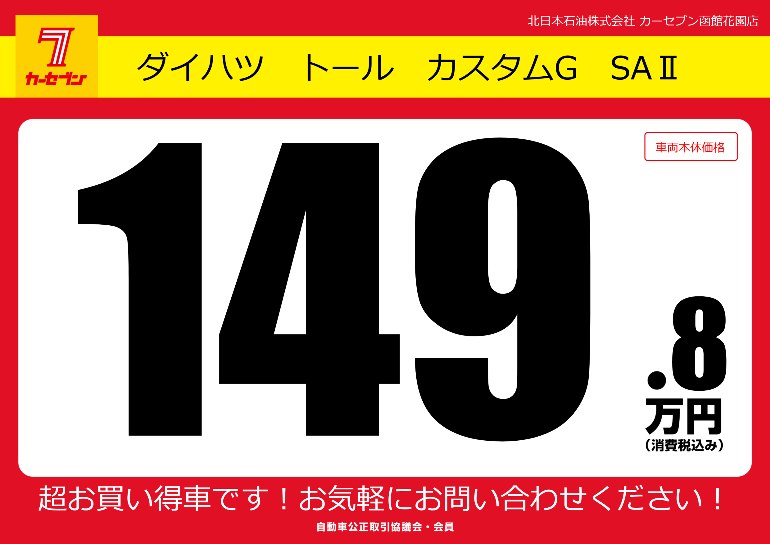 | 車名 | ダイハツ トール カスタムG SAⅡ | グレード ミッション 排気量 |