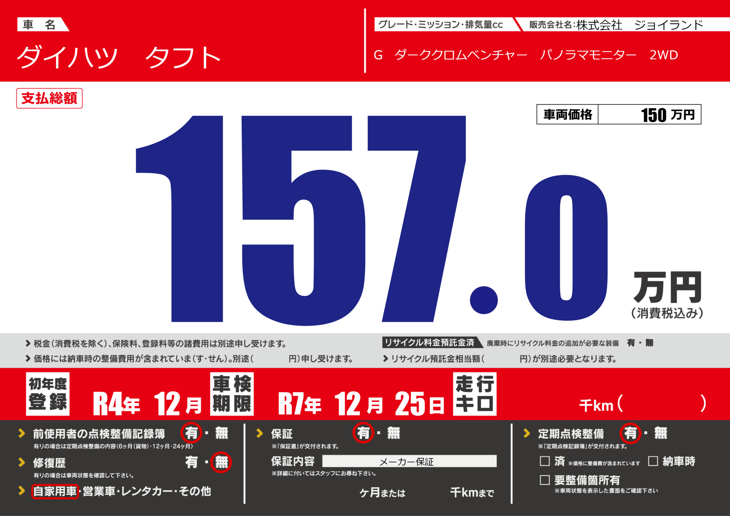 | 走行キロ | - | 初年度登録 | R4年12月 |