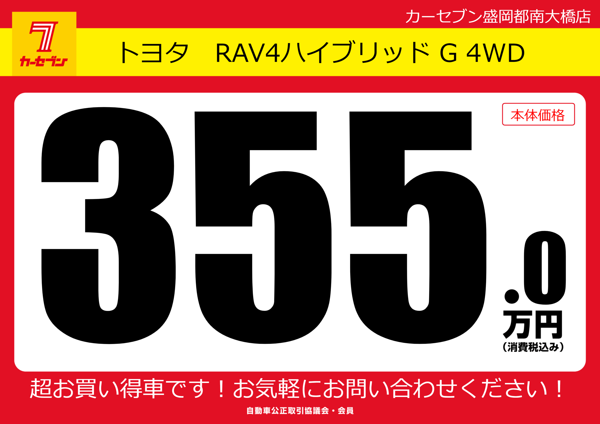 | 車名 | トヨタ RAV4ハイブリッド G 4WD | グレード ミッション 排気量 |