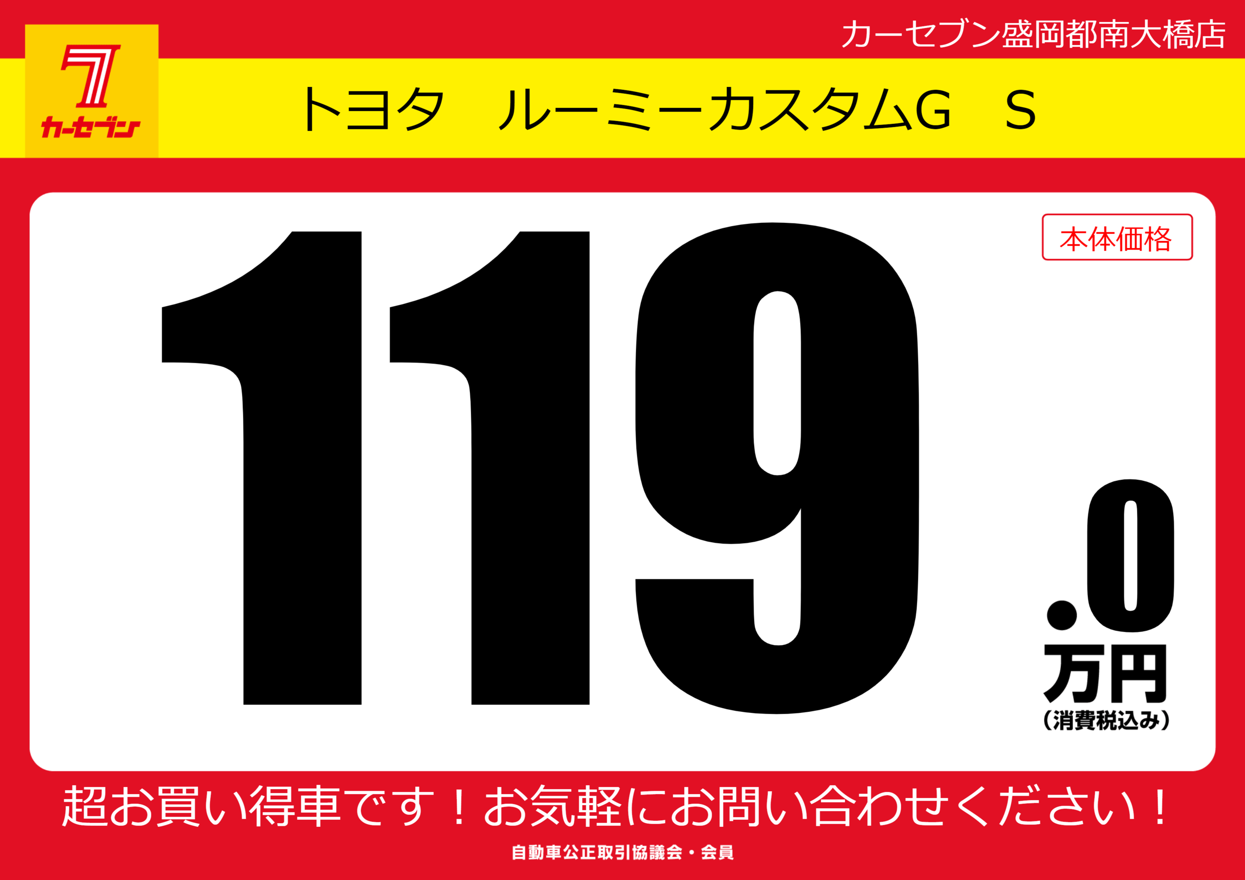 | 車名 | トヨタ ルーミーカスタムG S | グレード ミッション 排気量 |