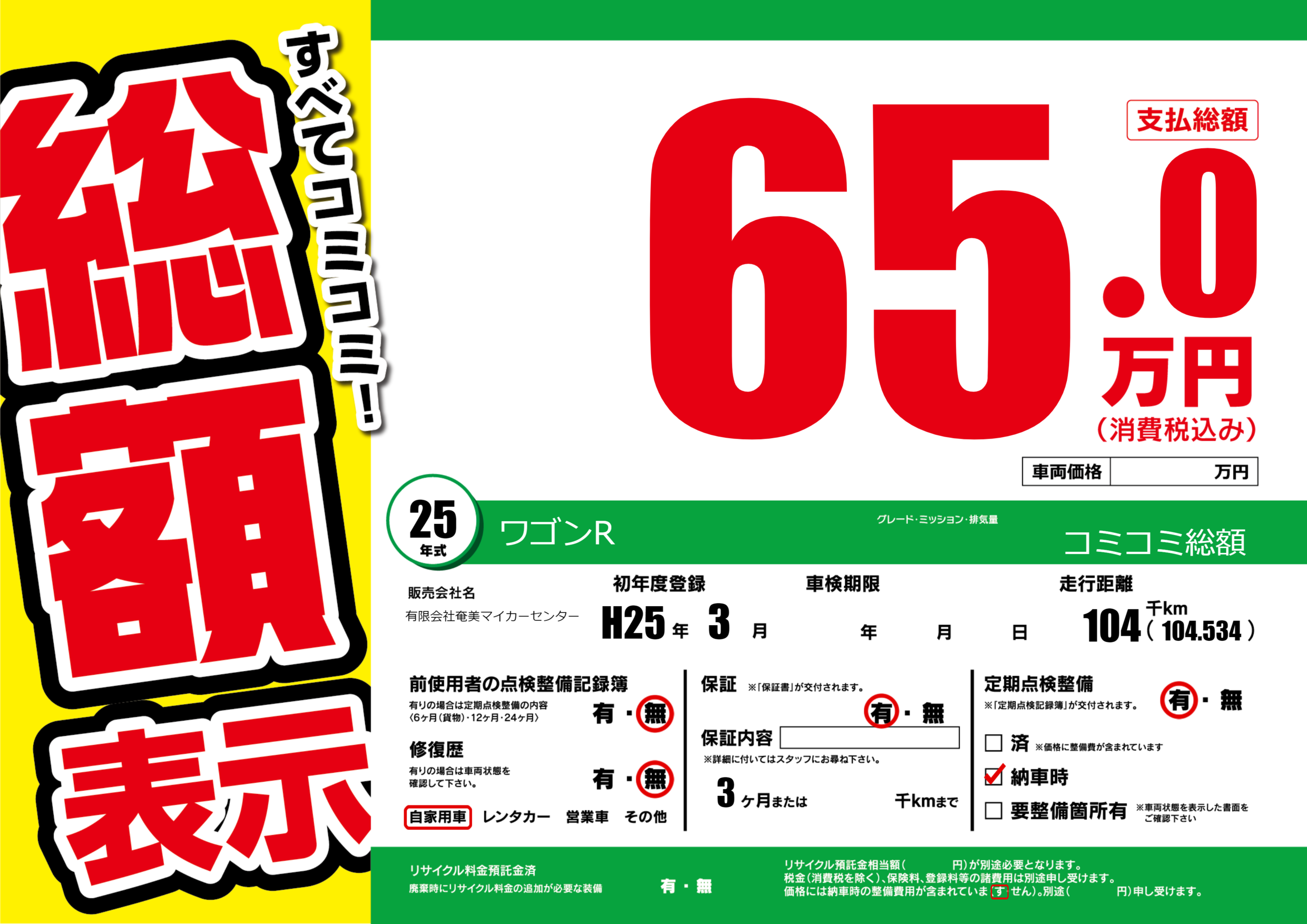 | 定期点検整備 | 定期点検整備あり 納車時あり | ||