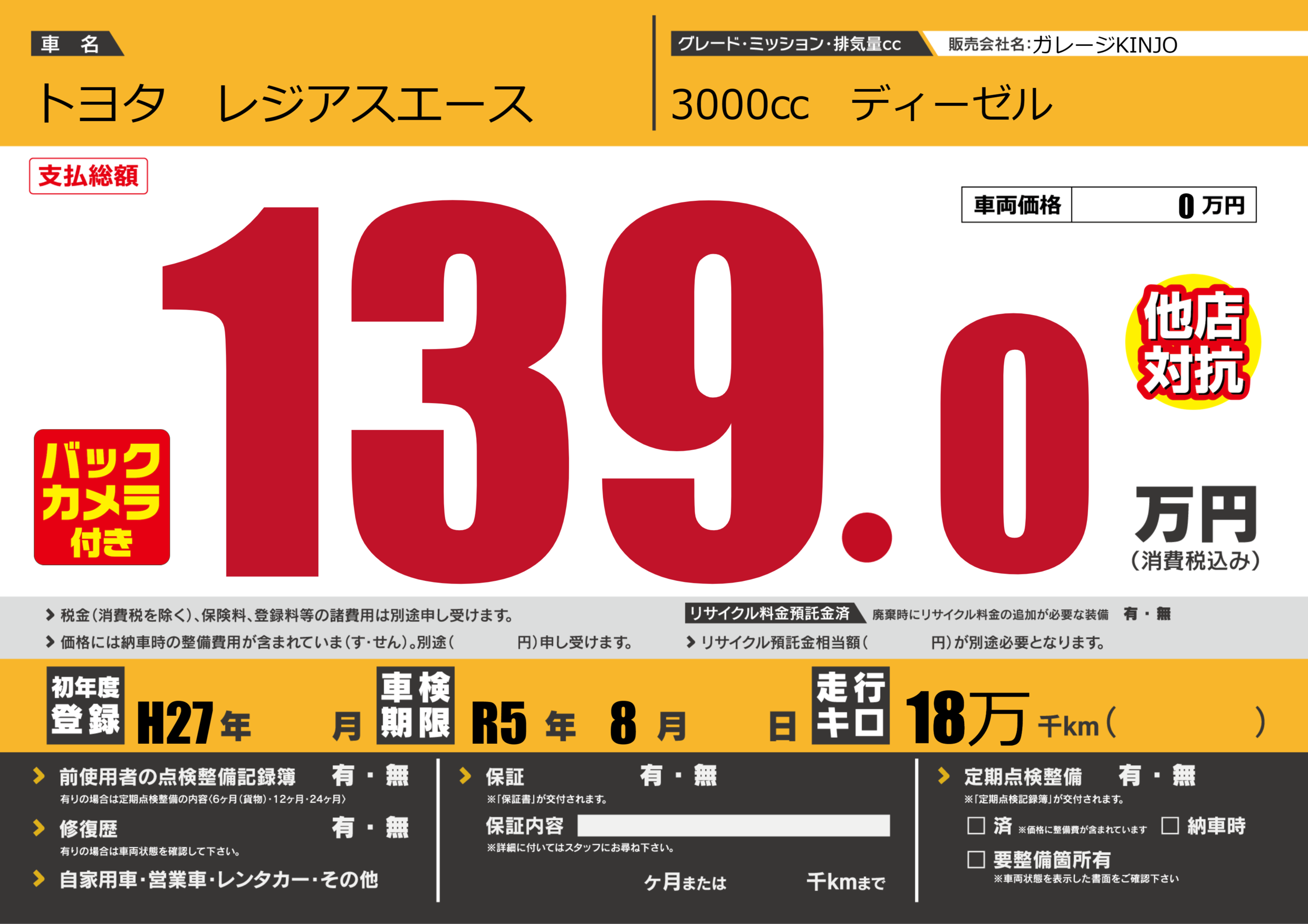 なし | 車検制限 | R5年8月---月 |