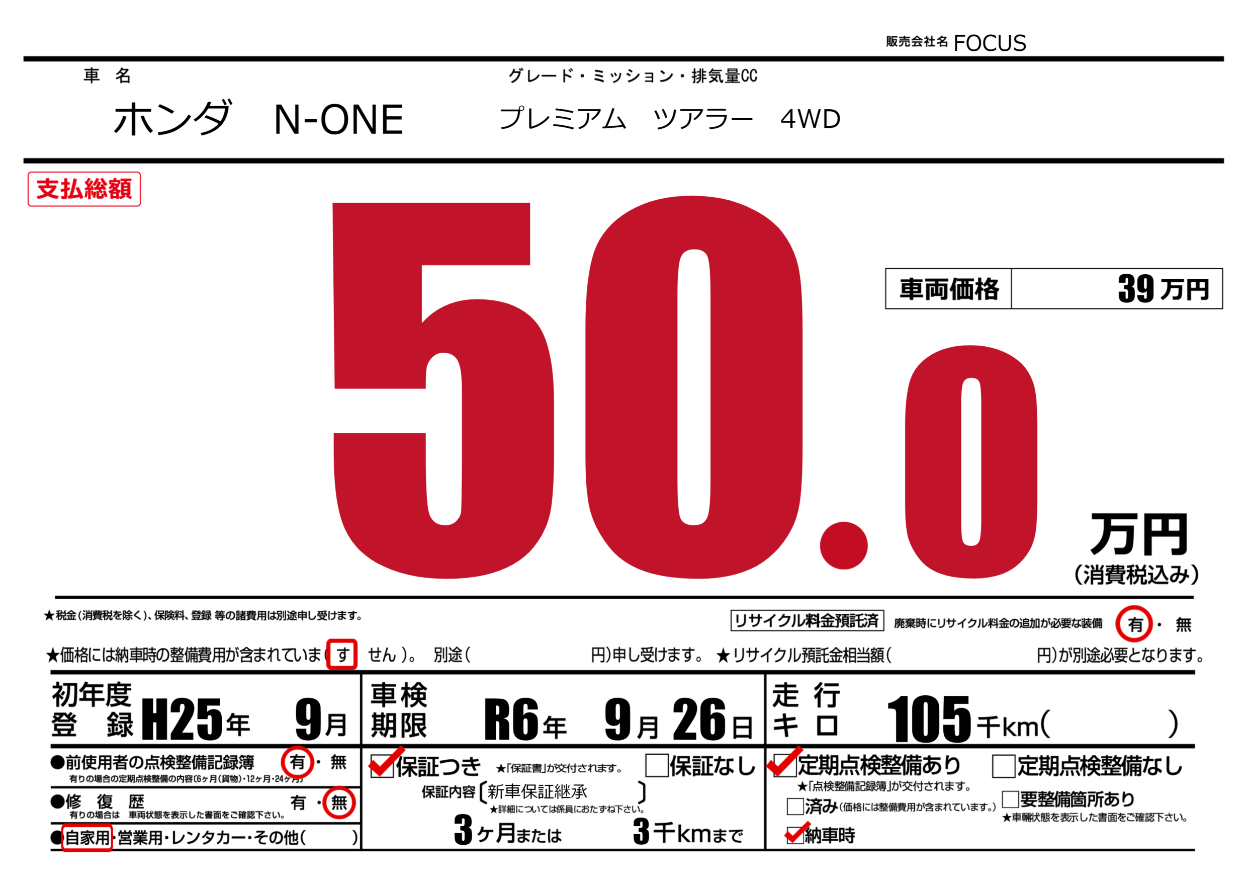 | 車検制限 | R6年 9月 26日 | ||