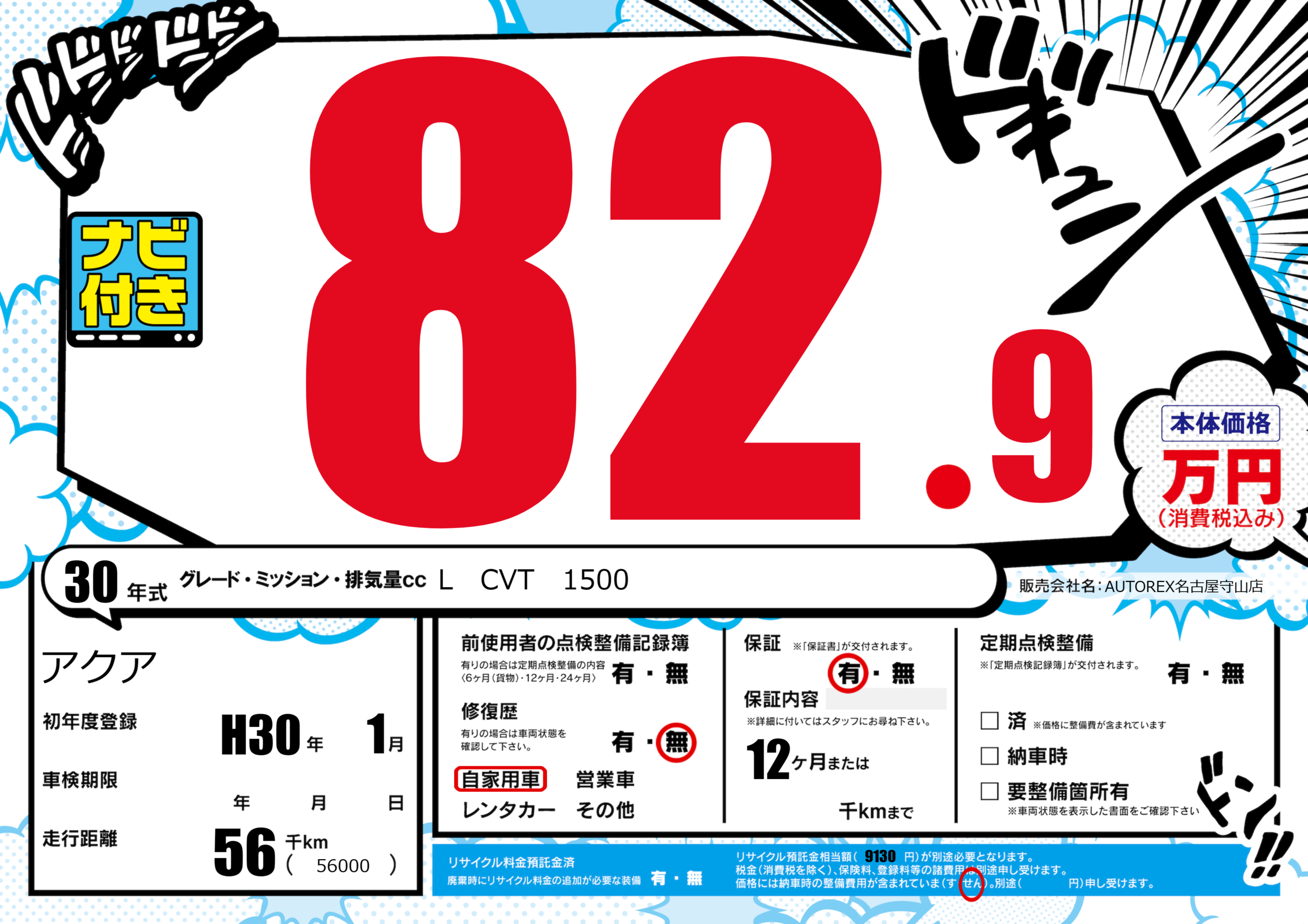 保証付き 保証内容(---) 12ヶ月または()千kmまで |