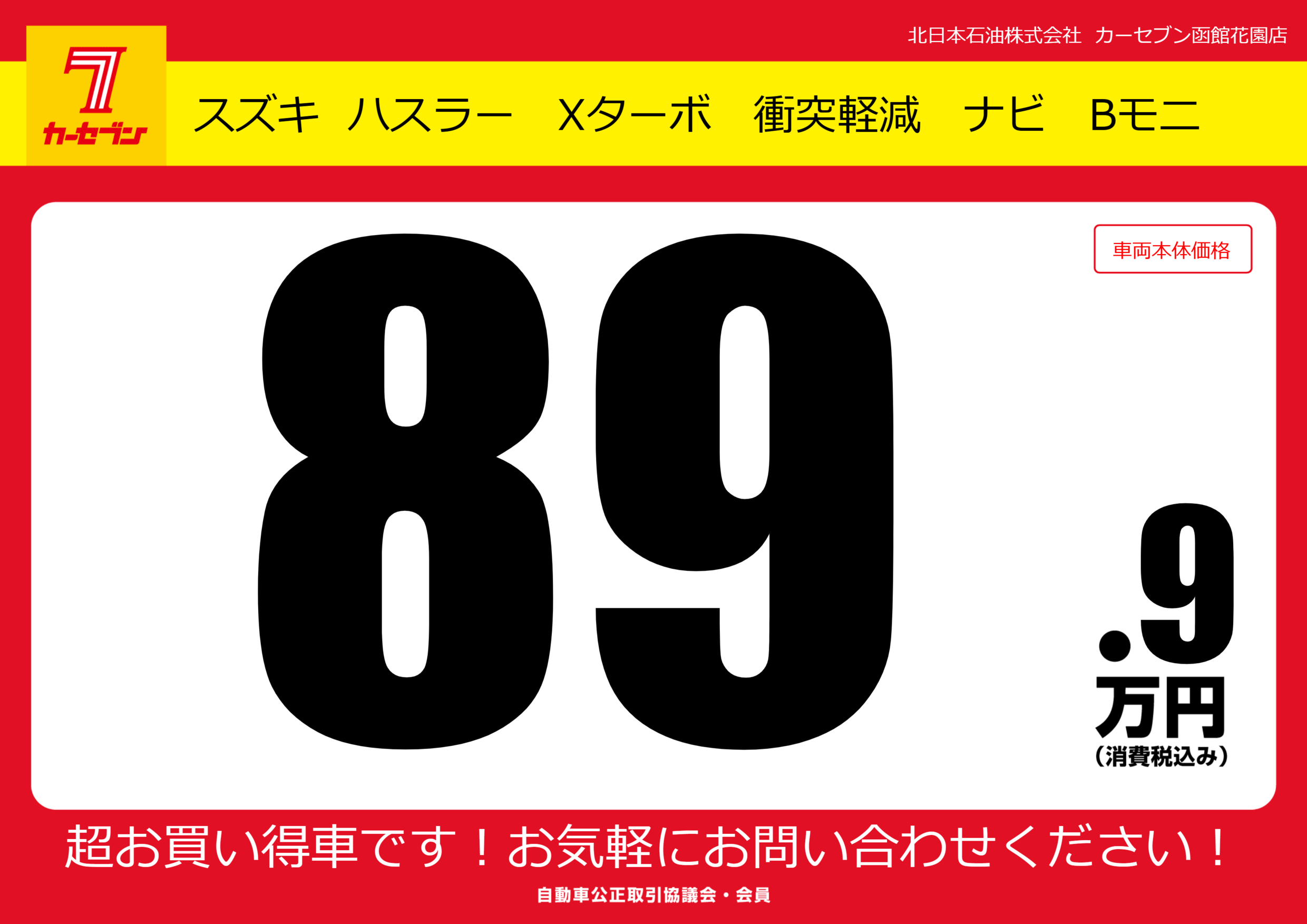 | 車名 | スズキ ハスラー Xターボ 衝突軽減 ナビ Bモニ | グレード ミッション 排気量 |