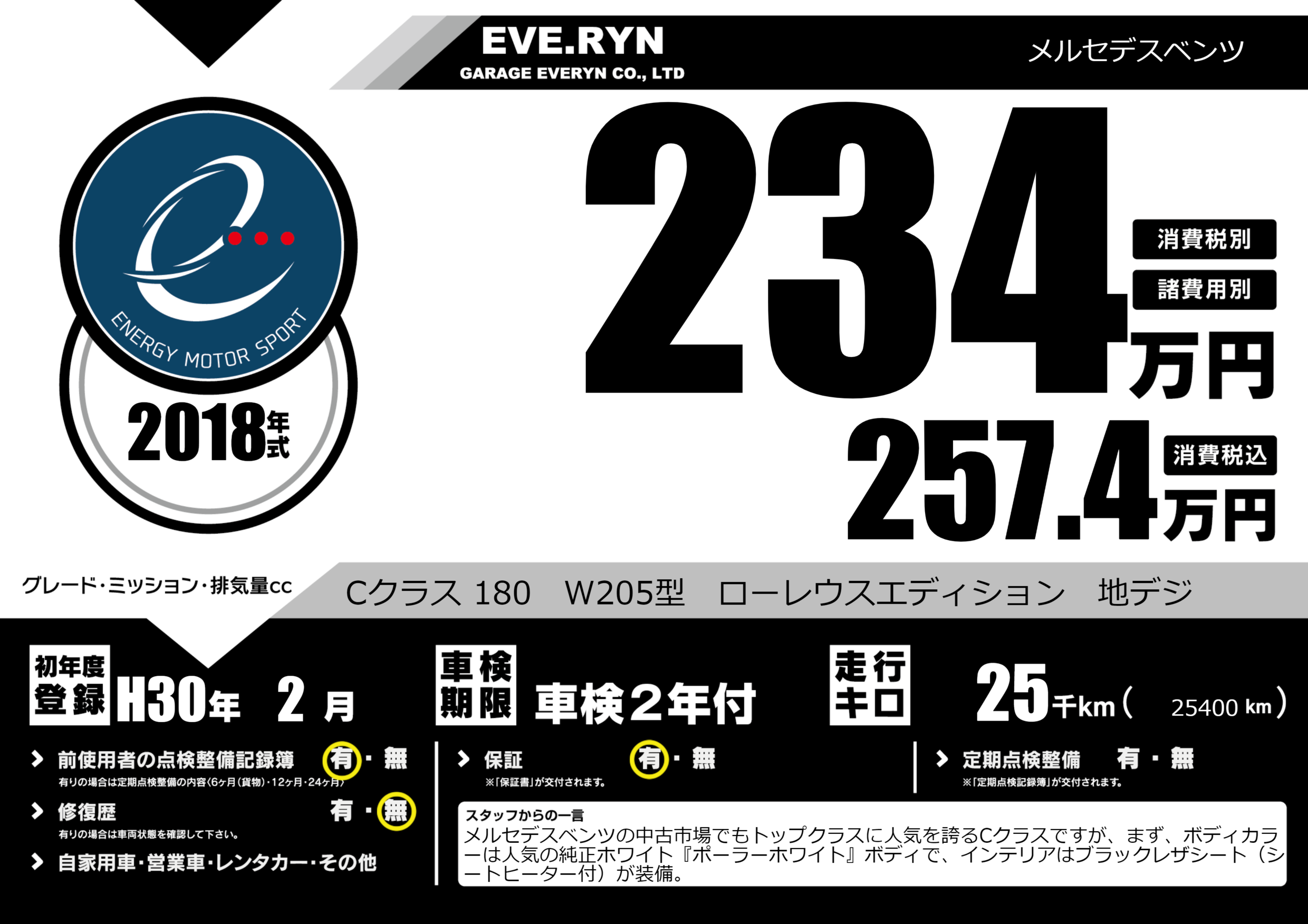 Cクラス 180 W205型 ローレウスエディション 地デジ |
