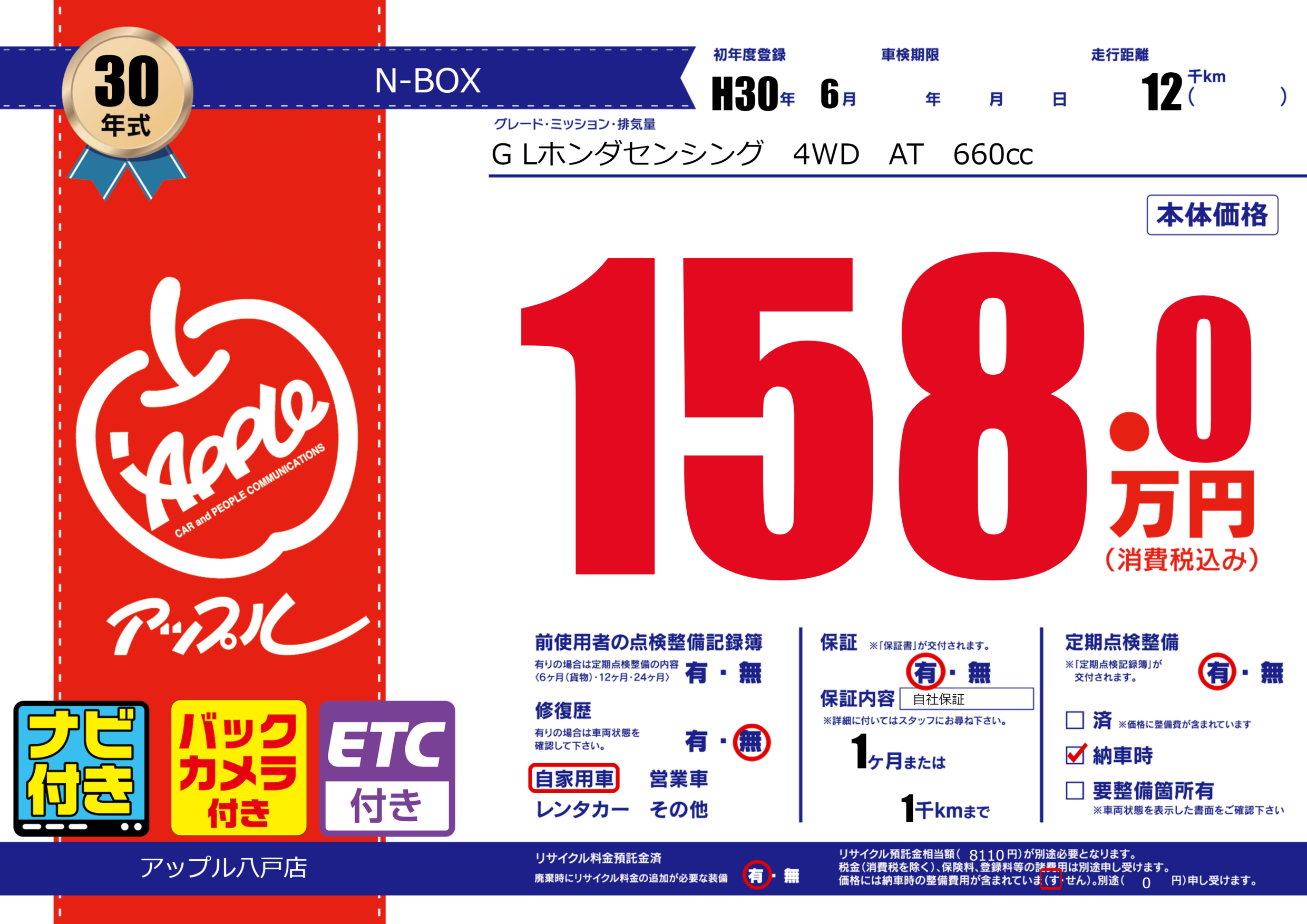 | 走行キロ | 1.2万km | 初年度登録 | H30年6月 |