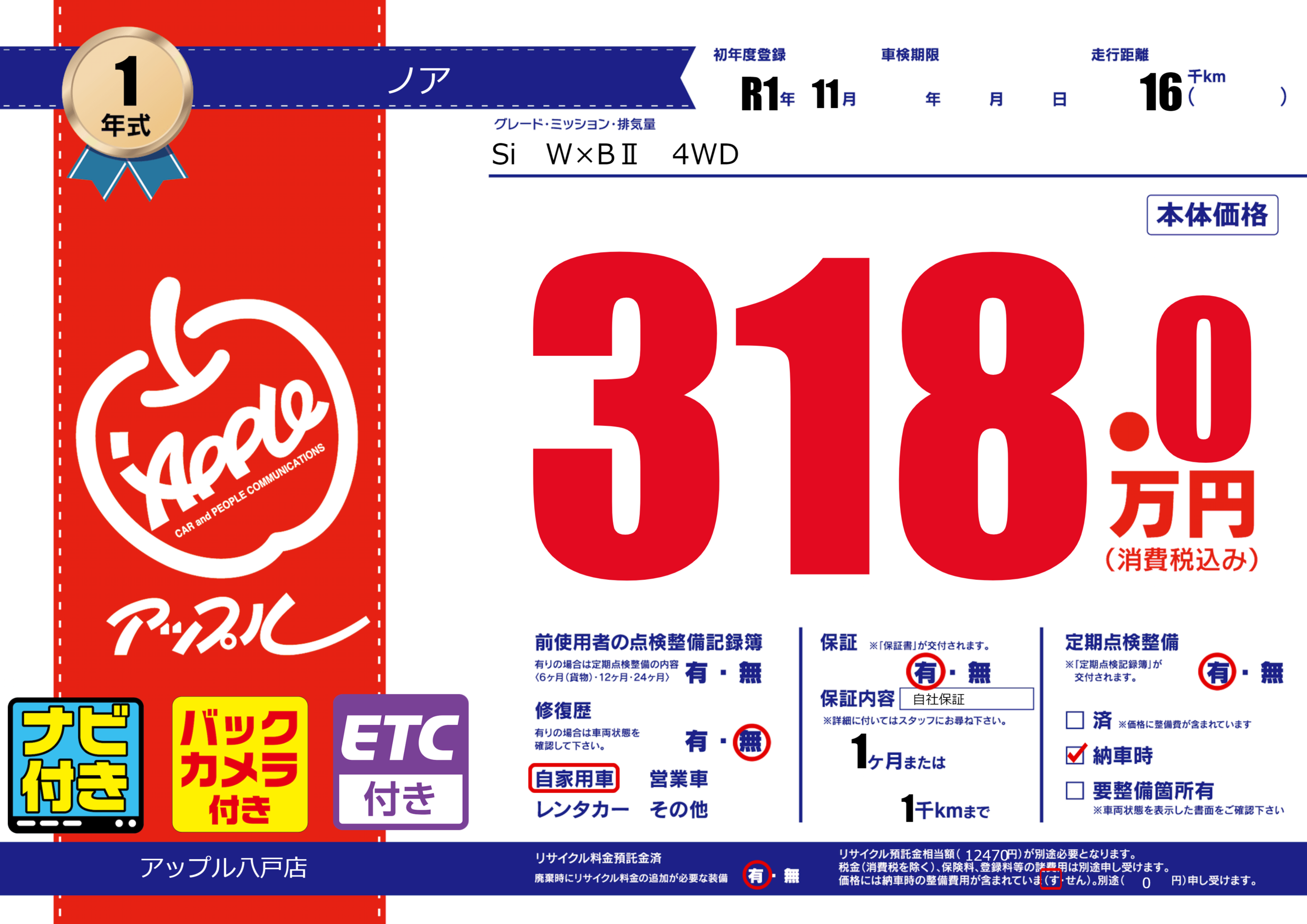 保証付き 保証内容( 自社保証) 1ヶ月または(1)千kmまで |