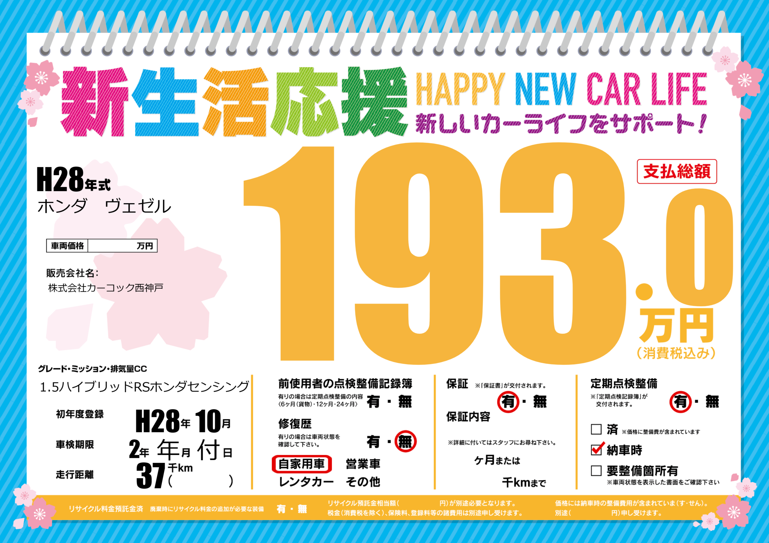 | 車名 | ホンダ ヴェゼル | グレード ミッション 排気量 |