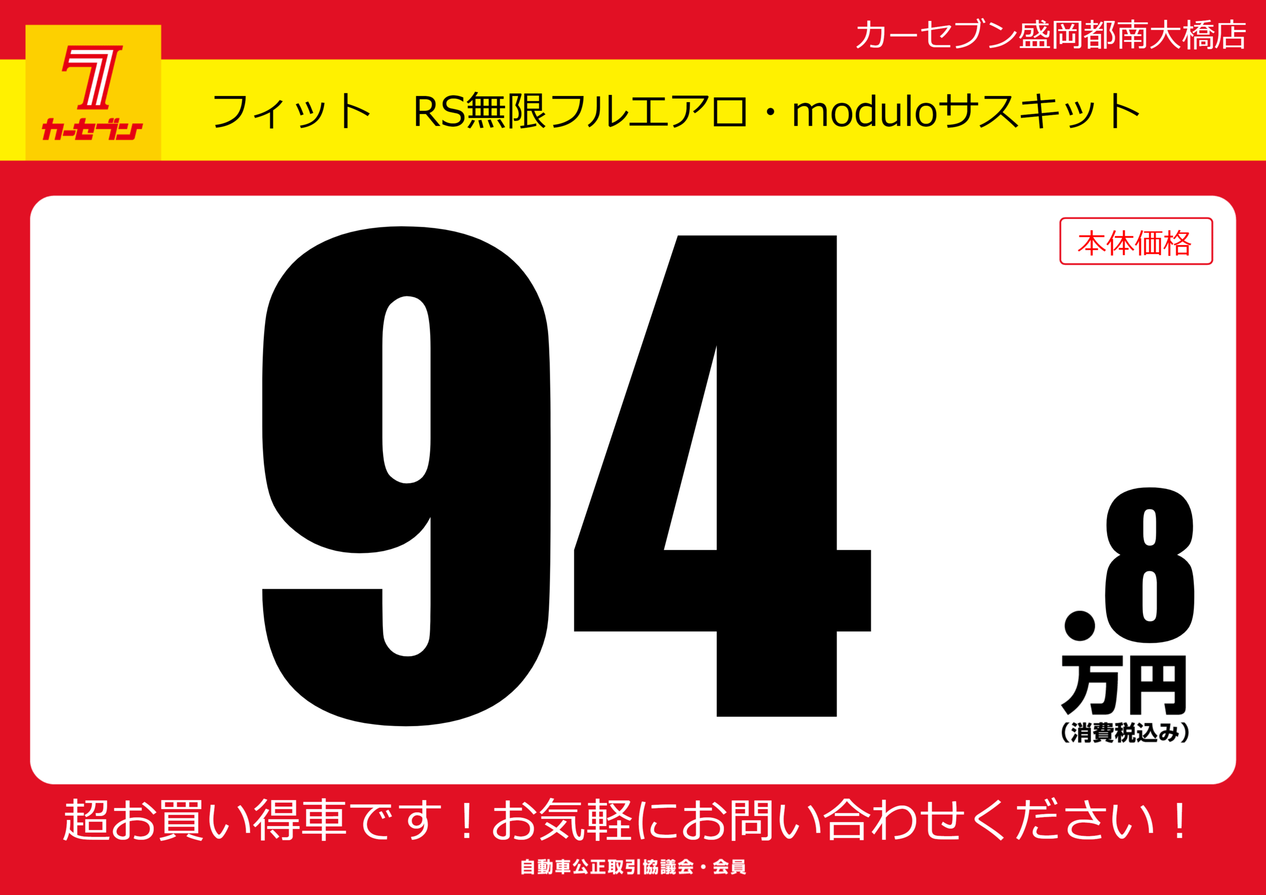 | 車名 | フィット RS無限フルエアロ・moduloサスキット | グレード ミッション 排気量 |