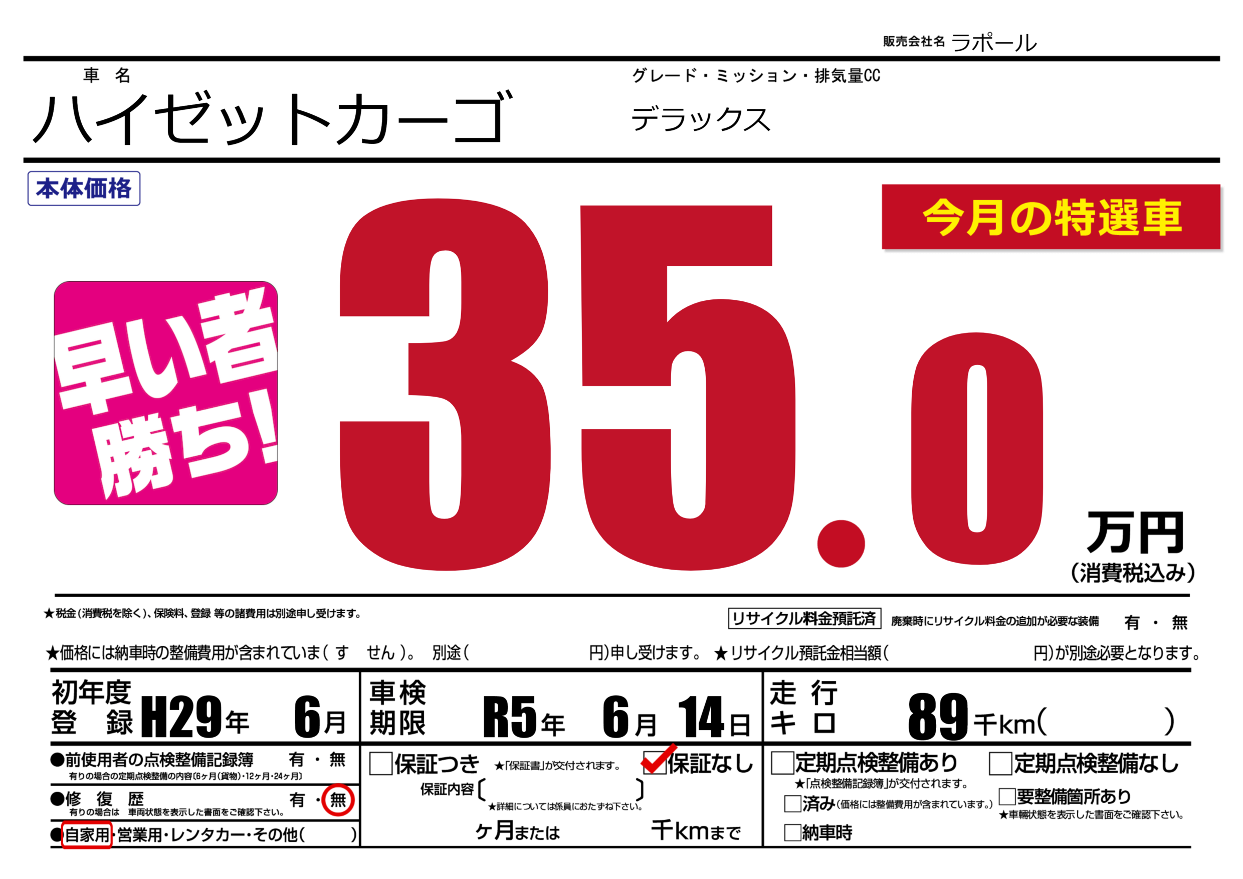 なし | 車検制限 | R5年6月14月 |
