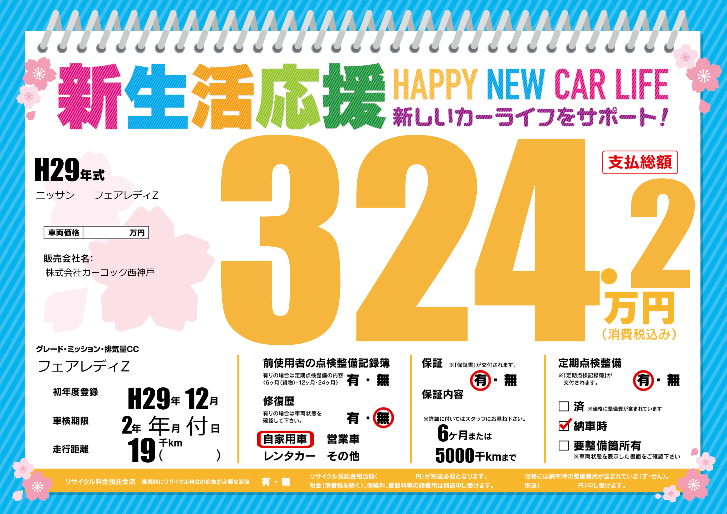 | 定期点検整備 | 定期点検整備あり 納車時あり | ||