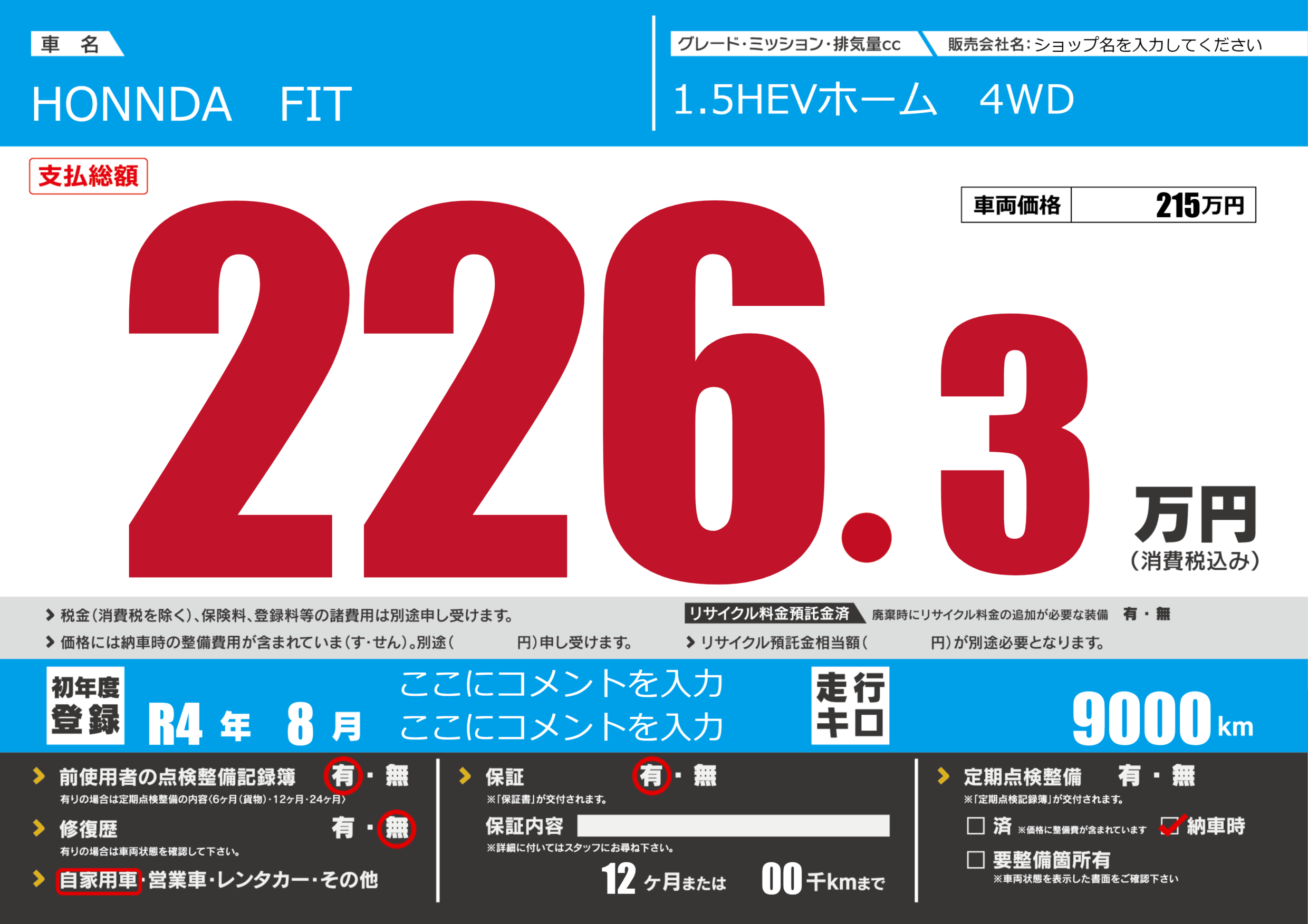 保証付き 保証内容(---) 12ヶ月または(00)千kmまで |