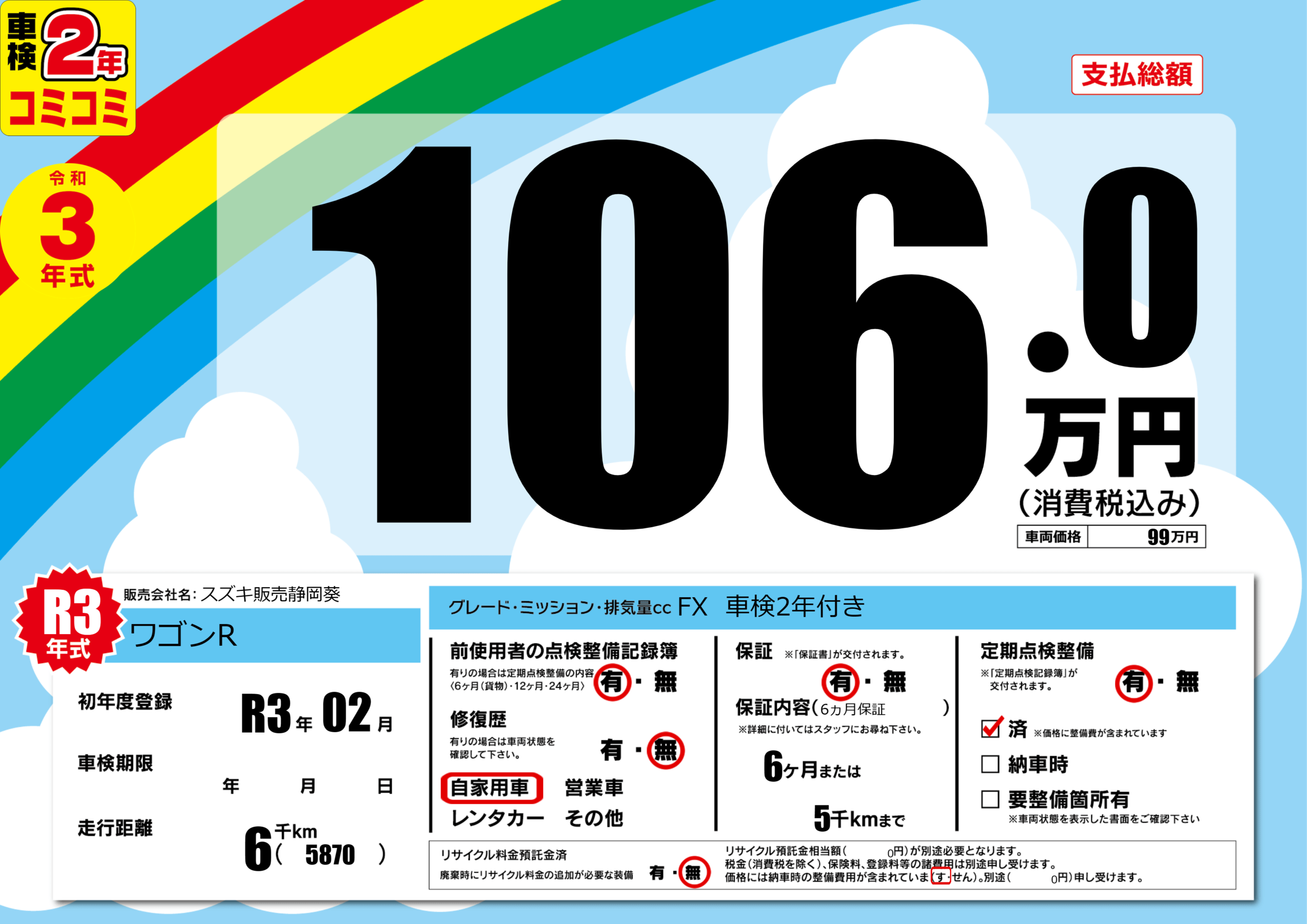 | 定期点検整備 | 定期点検整備あり 定期点検整備済み | ||
