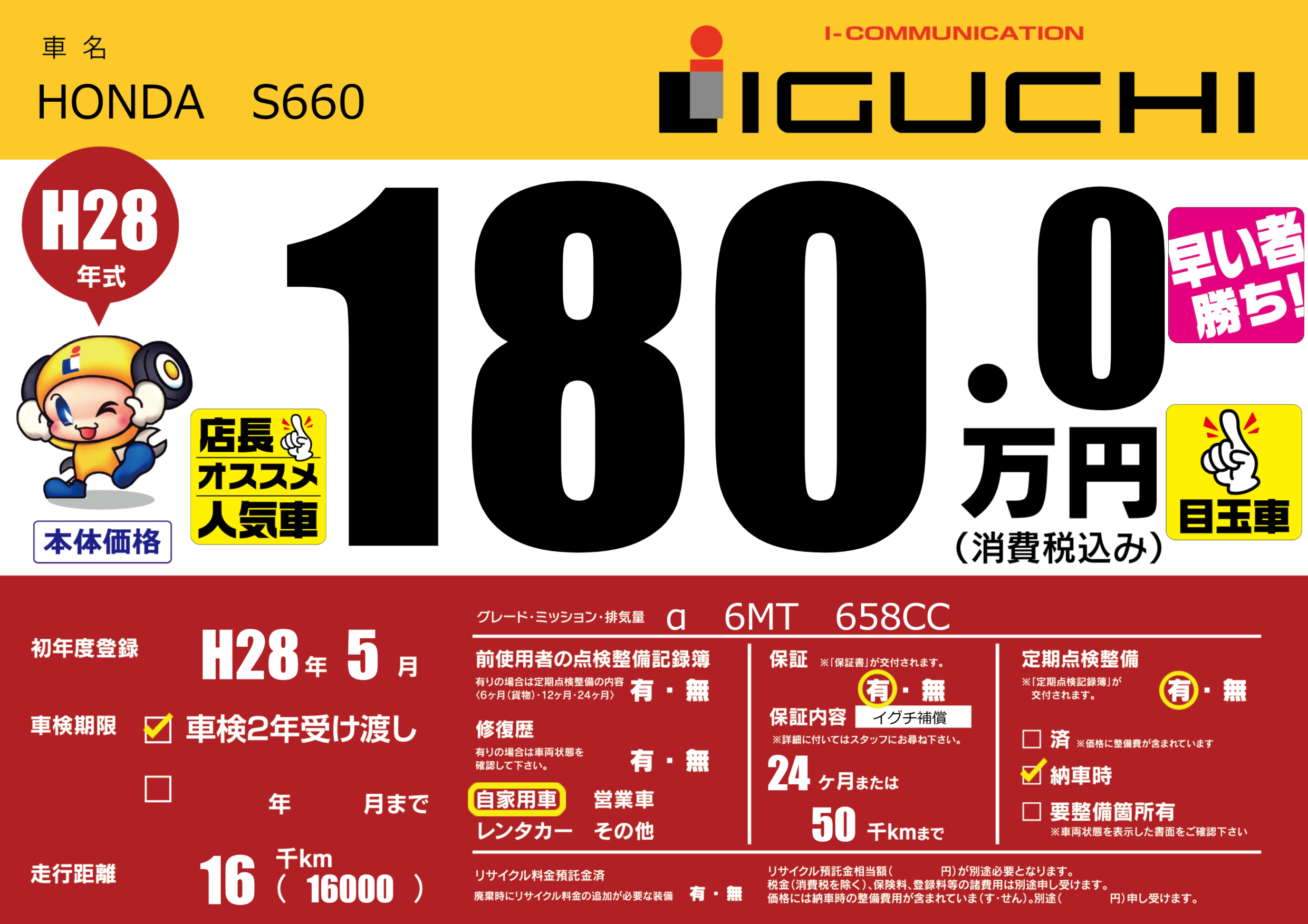 保証付き 保証内容(イグチ補償) 24ヶ月または(50)千kmまで |
