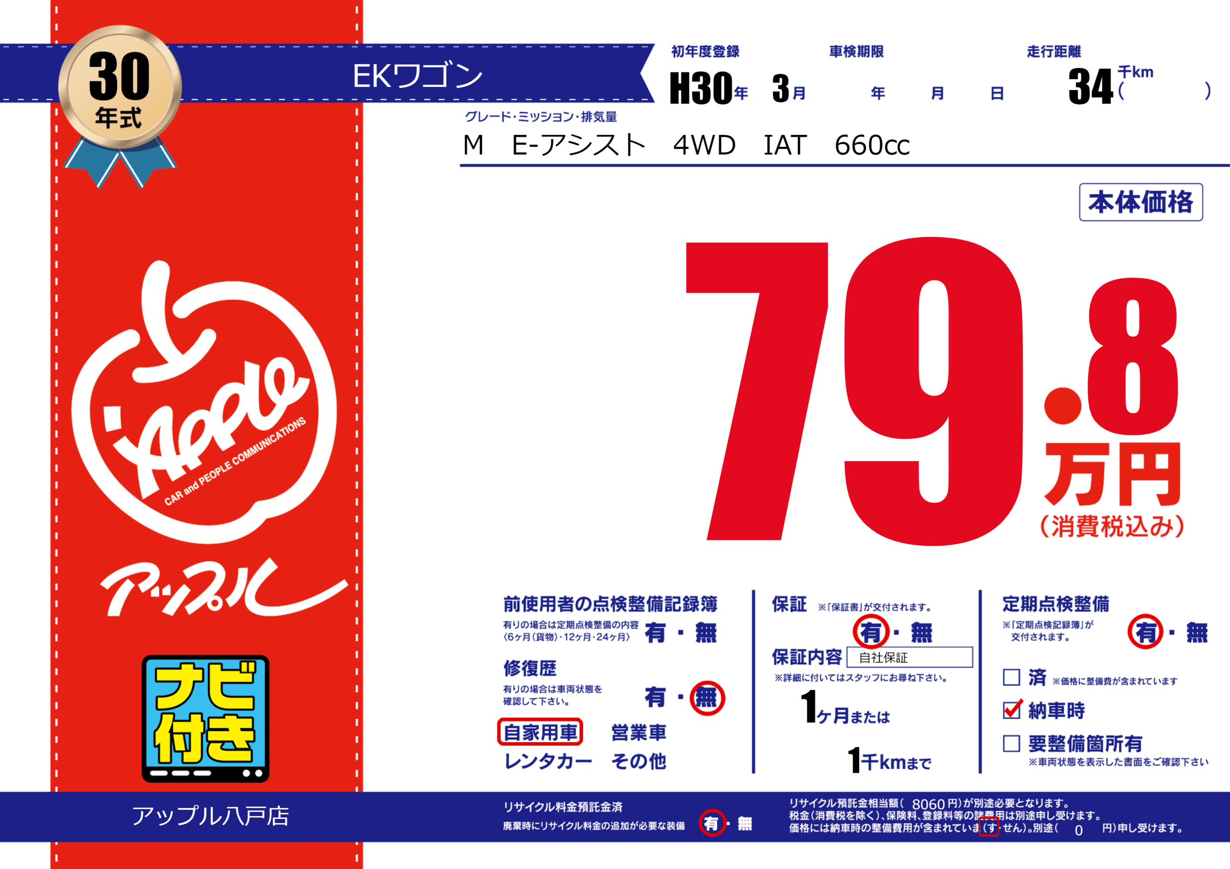 | 定期点検整備 | 定期点検整備あり 納車時あり | ||