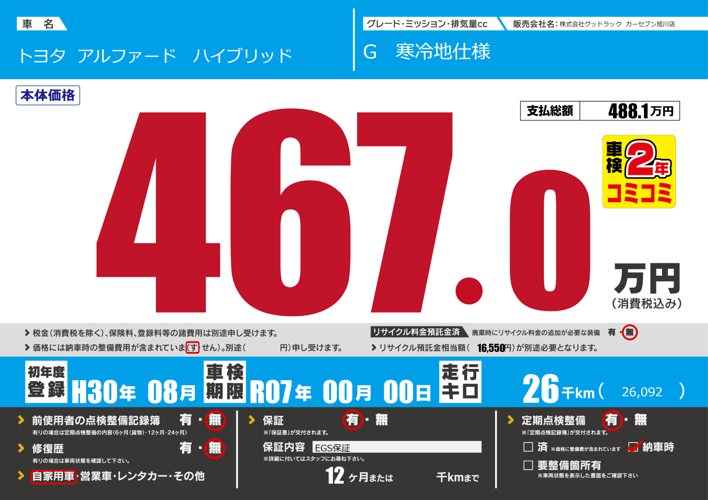 | 車名 | トヨタ アルファード ハイブリッド | グレード ミッション 排気量 |