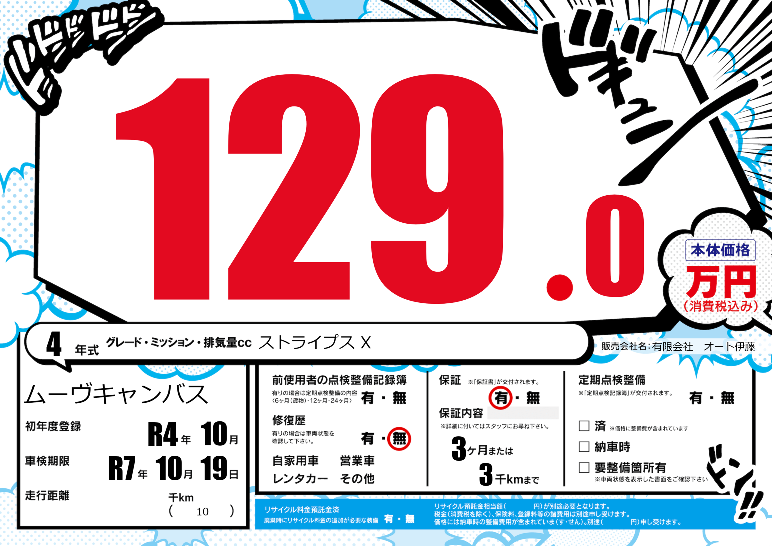 | 走行キロ | - | 初年度登録 | R4年10月 |