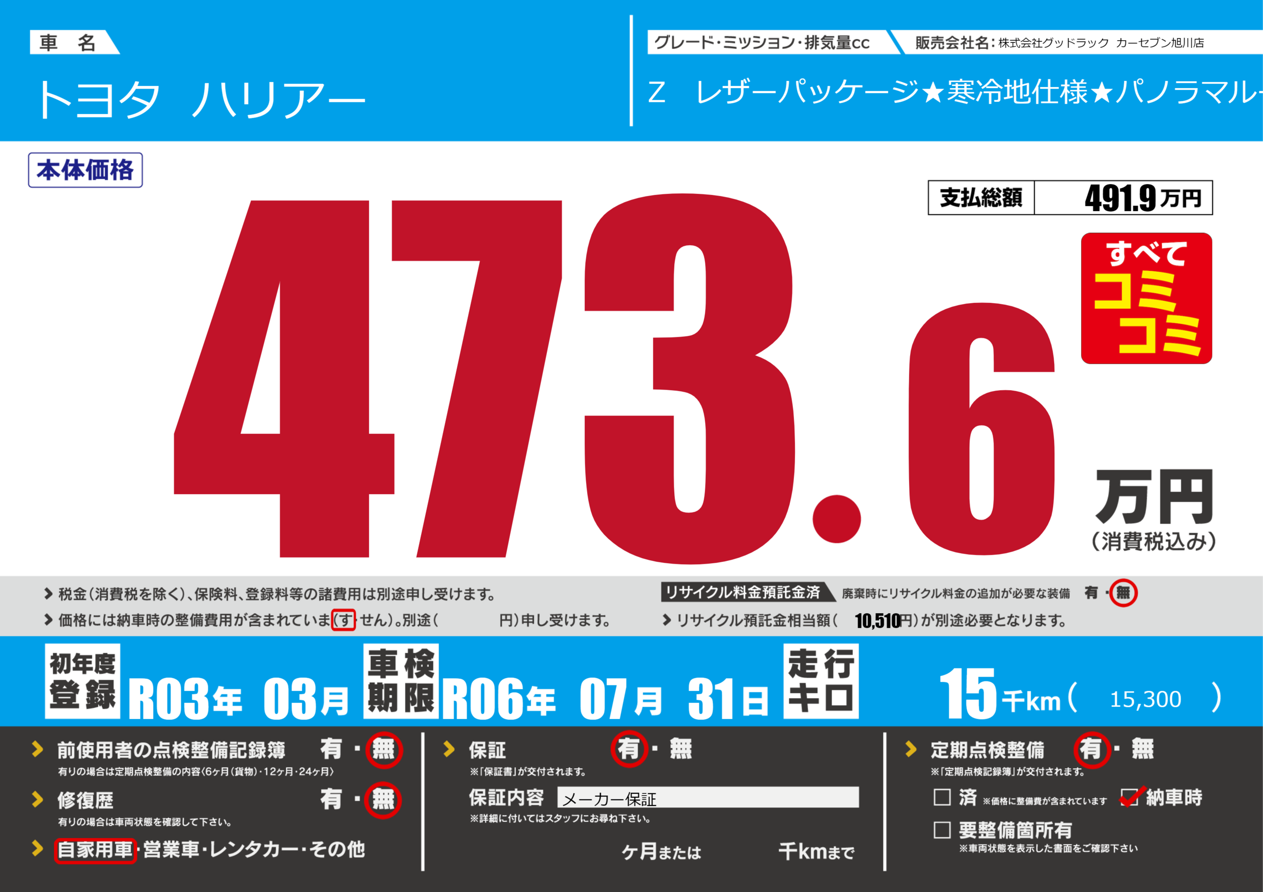 | 車名 | トヨタ ハリアー | グレード ミッション 排気量 |