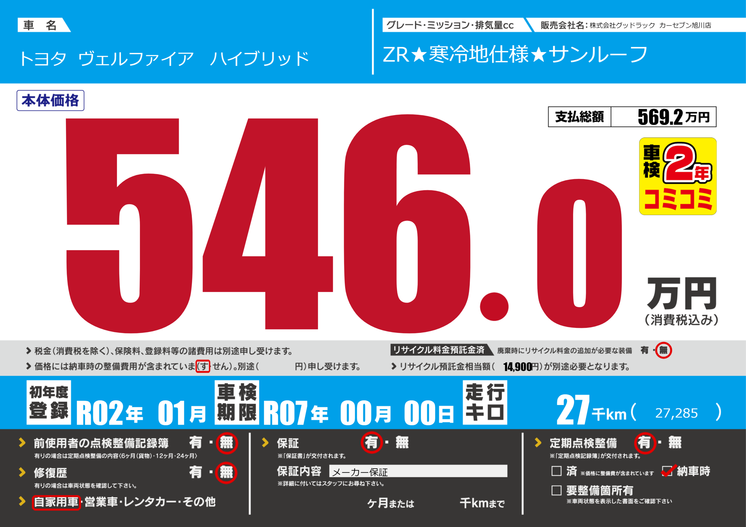 | 走行キロ | 2.7万km | 初年度登録 | R02年01月 |