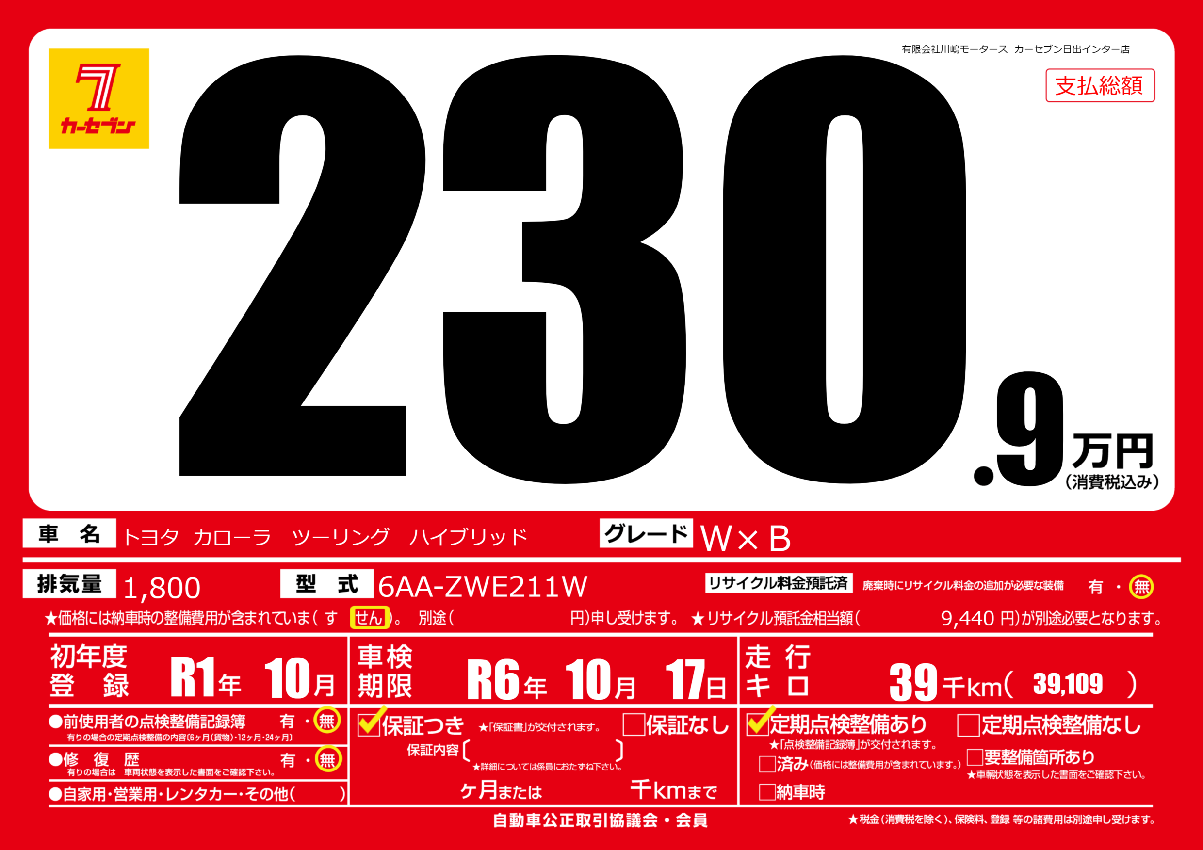 | 走行キロ | 3.9万km | ||
