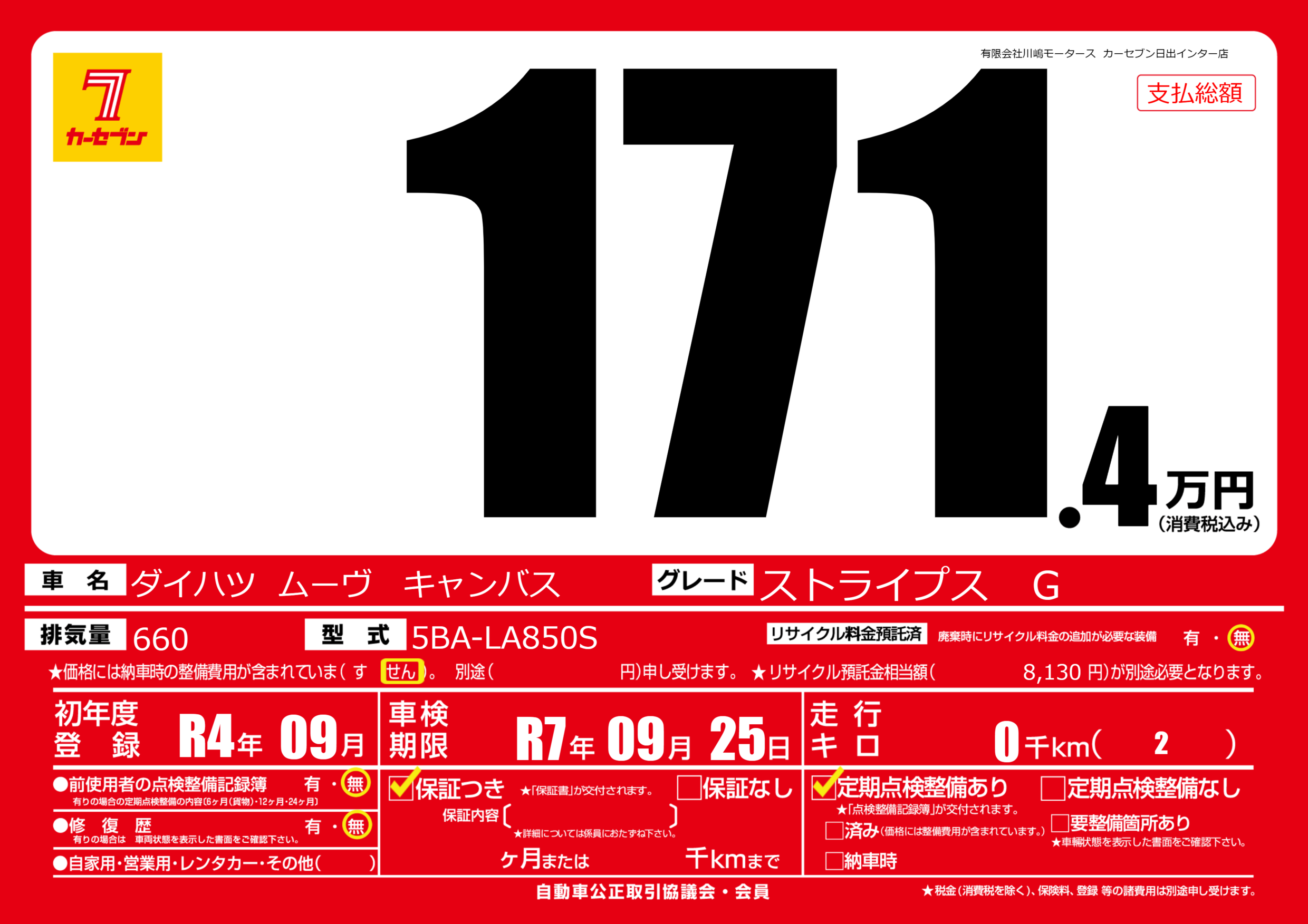 なし | 車検制限 | R7年09月25月 |