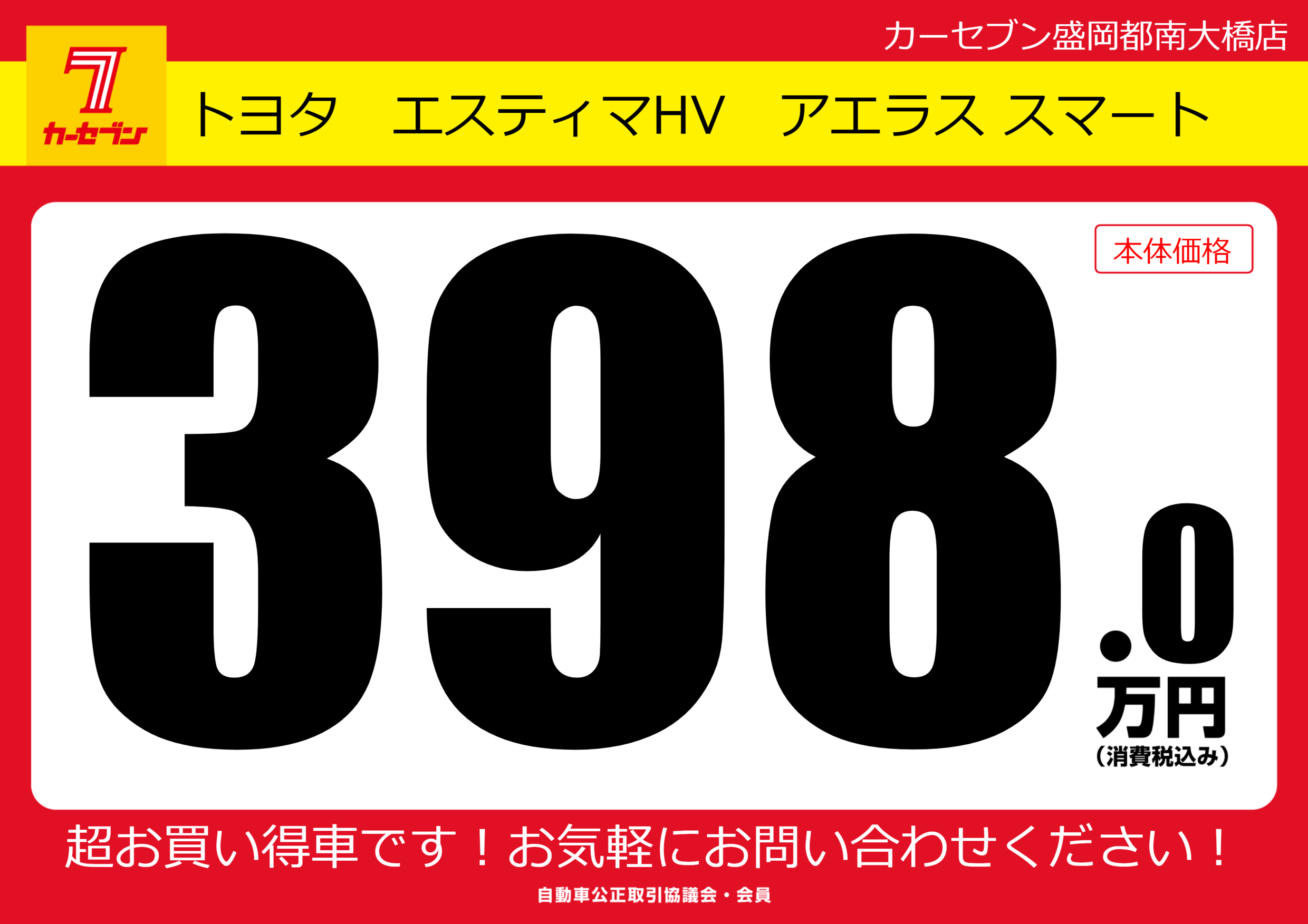 | 車名 | トヨタ エスティマHV アエラス スマート | グレード ミッション 排気量 |