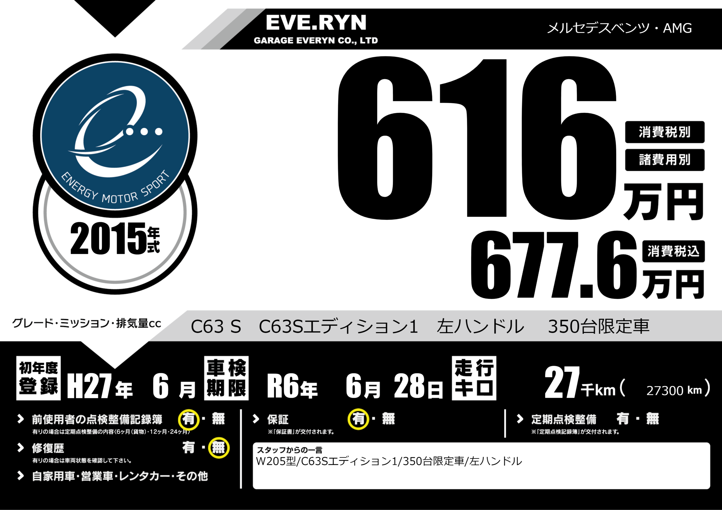 C63 S C63Sエディション1 左ハンドル 350台限定車 |
