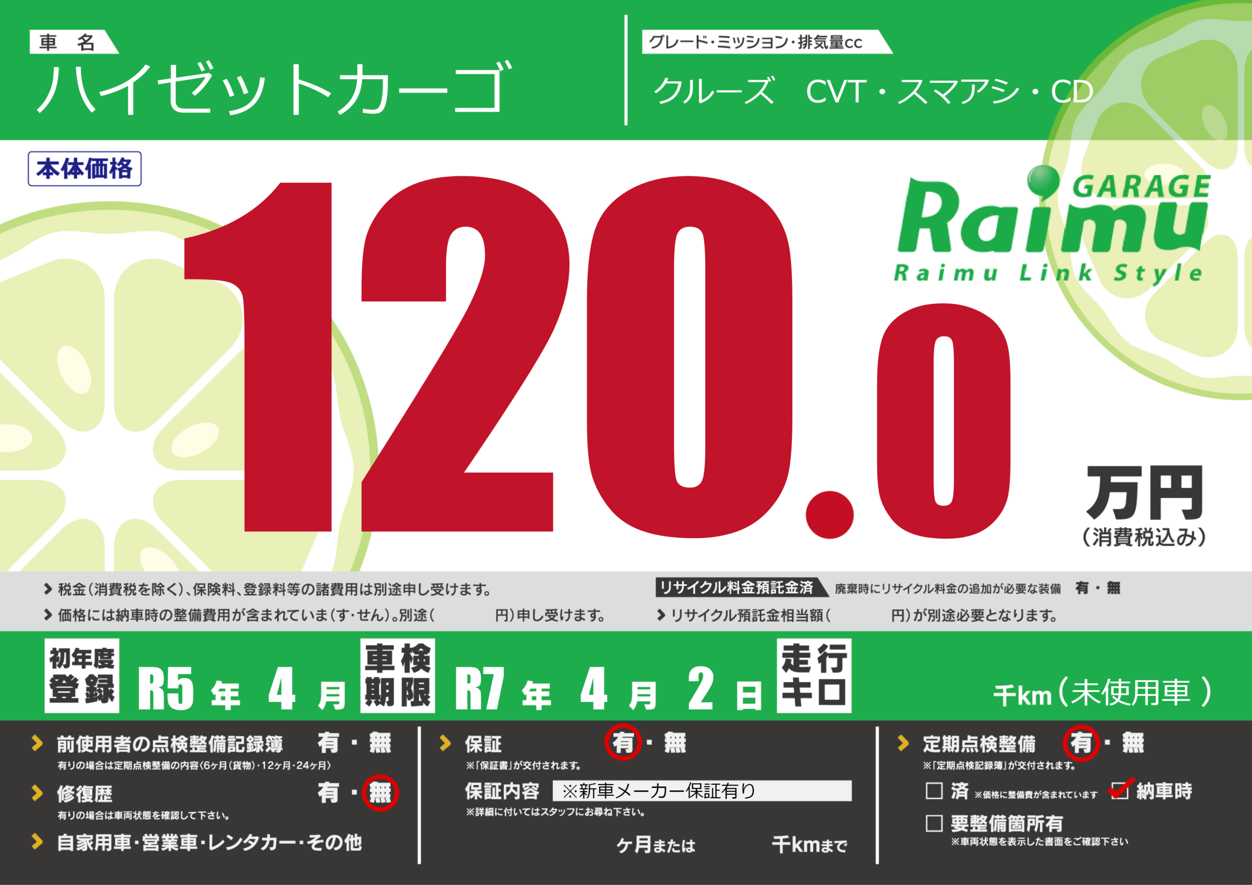 なし | 車検制限 | R7年4月2月 |