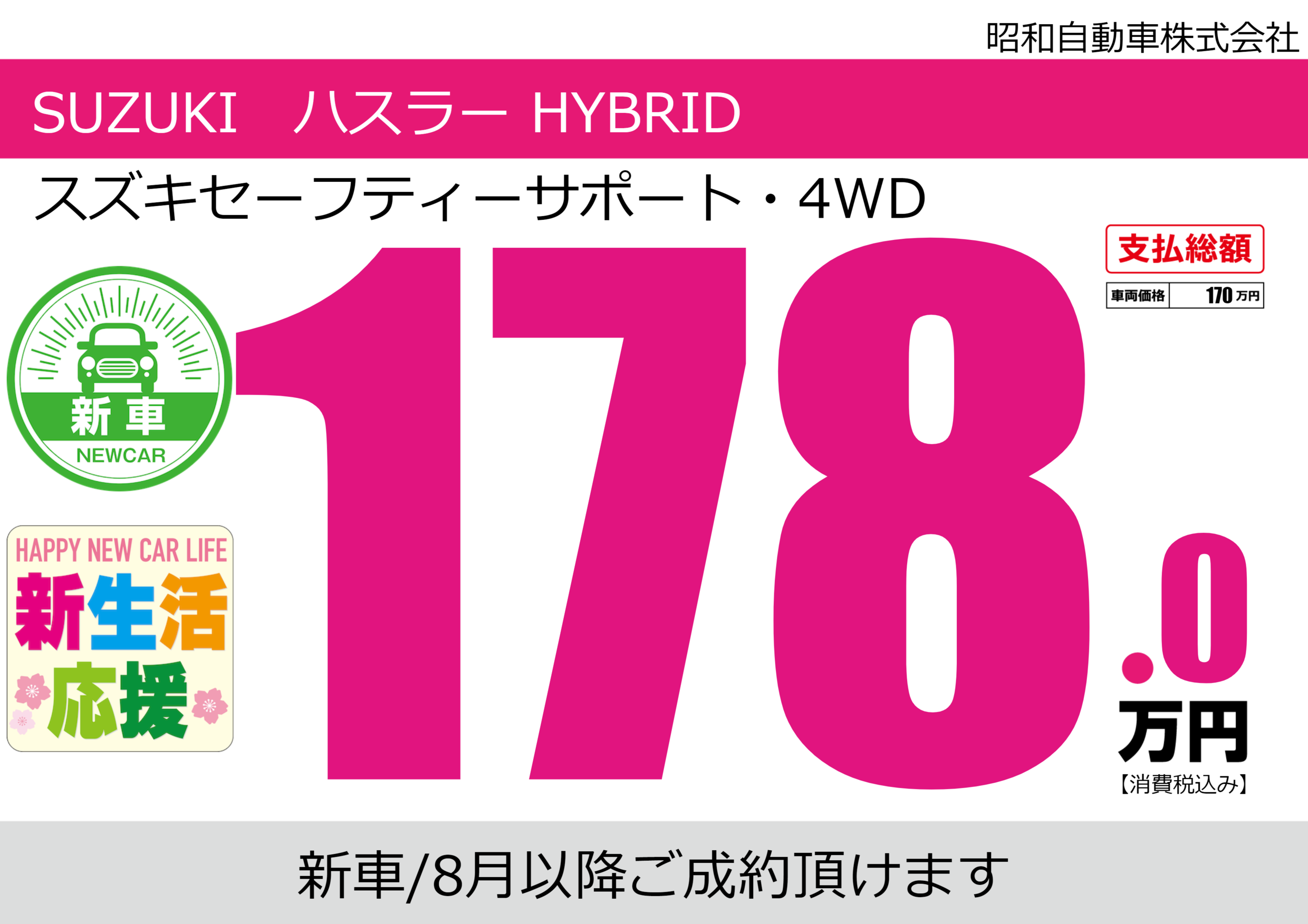| 車名 | SUZUKI ハスラー HYBRID | グレード ミッション 排気量 |