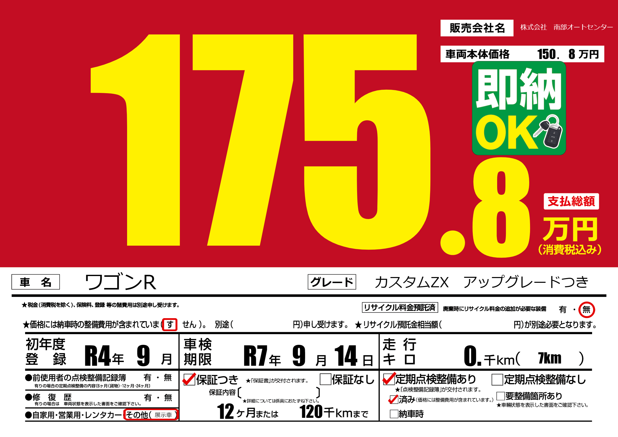 あり | 車検制限 | R7年9月14月 |