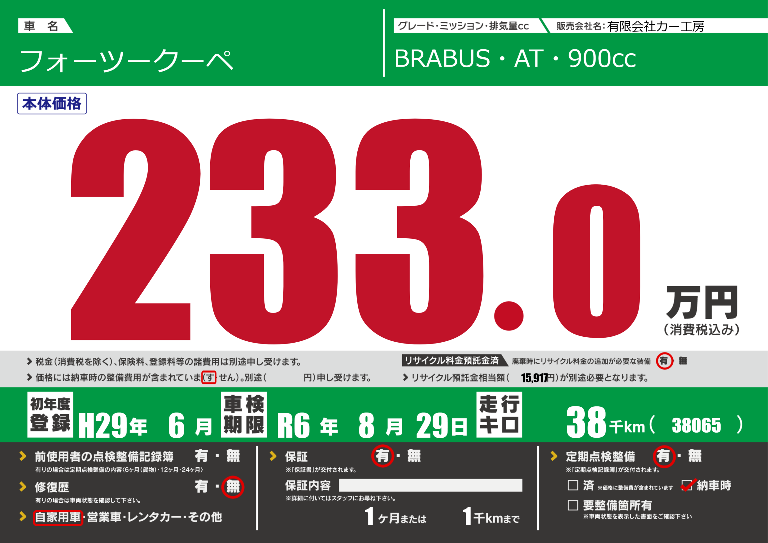 | 車名 | フォーツークーペ | グレード ミッション 排気量 |
