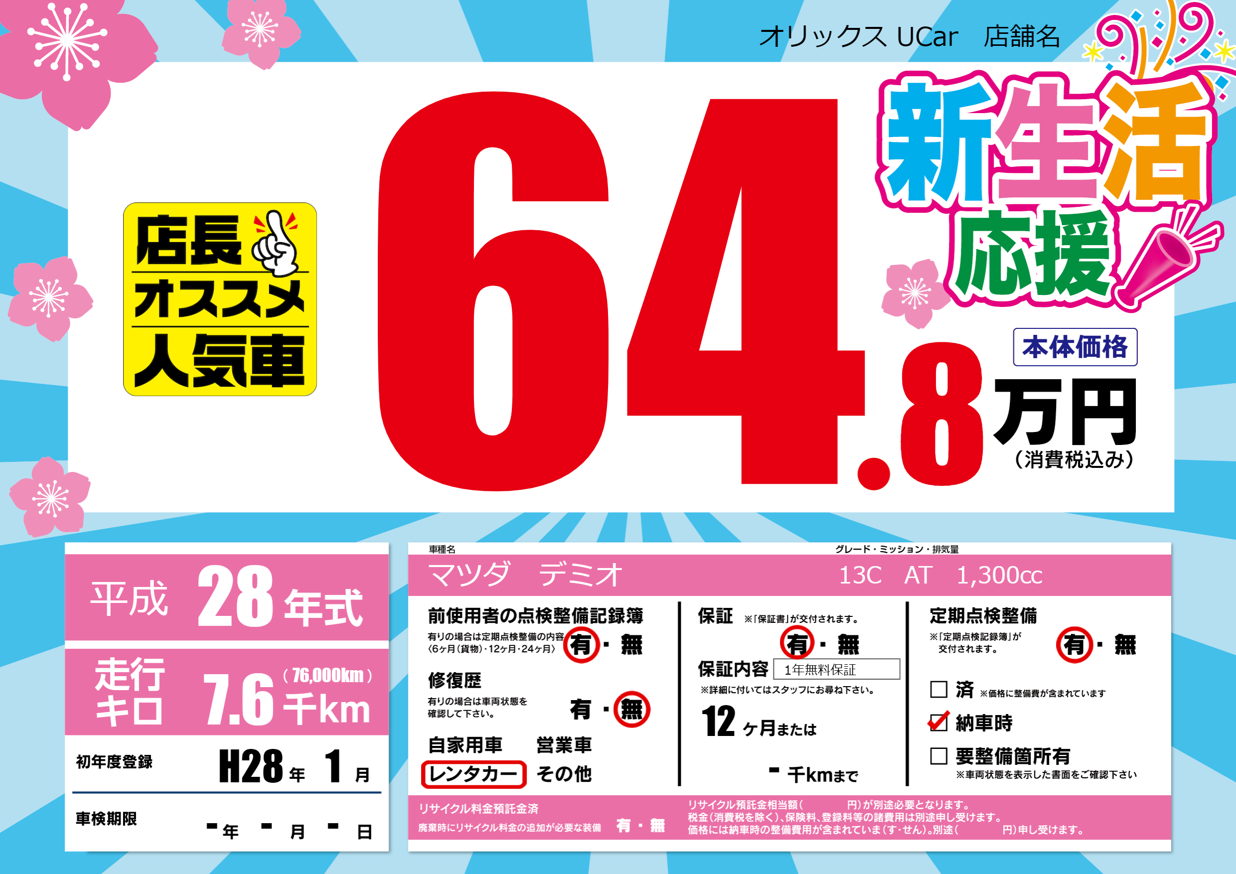 | 車名 | マツダ デミオ | グレード ミッション 排気量 |