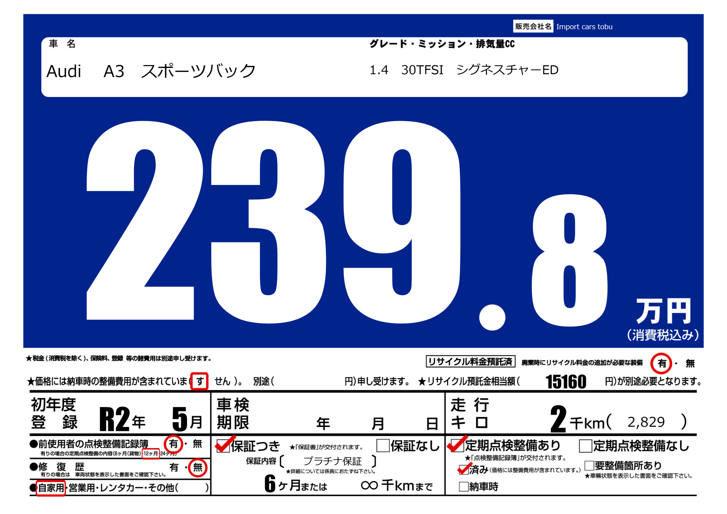 | 定期点検整備 | 定期点検整備あり 定期点検整備済み | ||