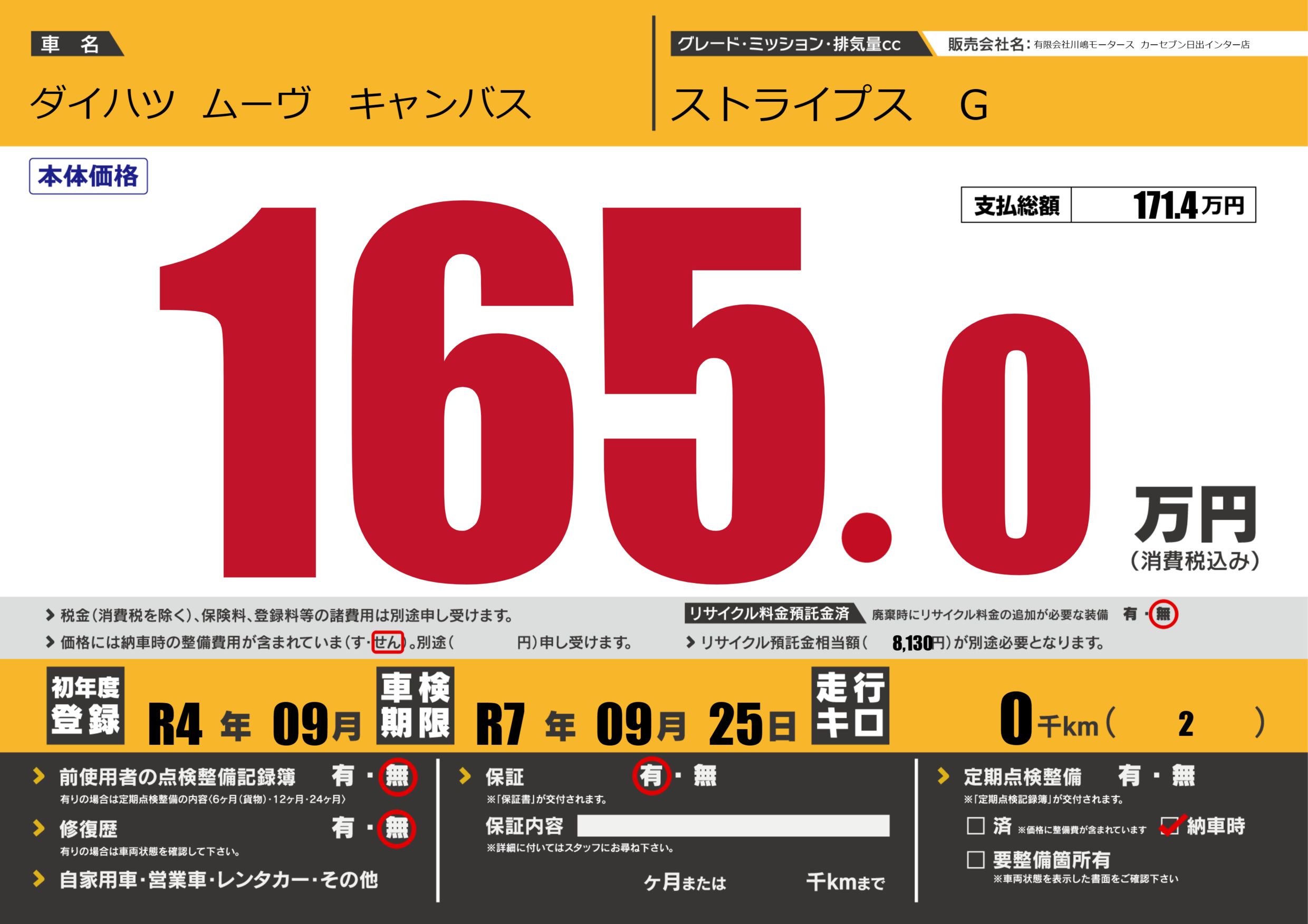 | 走行キロ | - | 初年度登録 | R4年09月 |