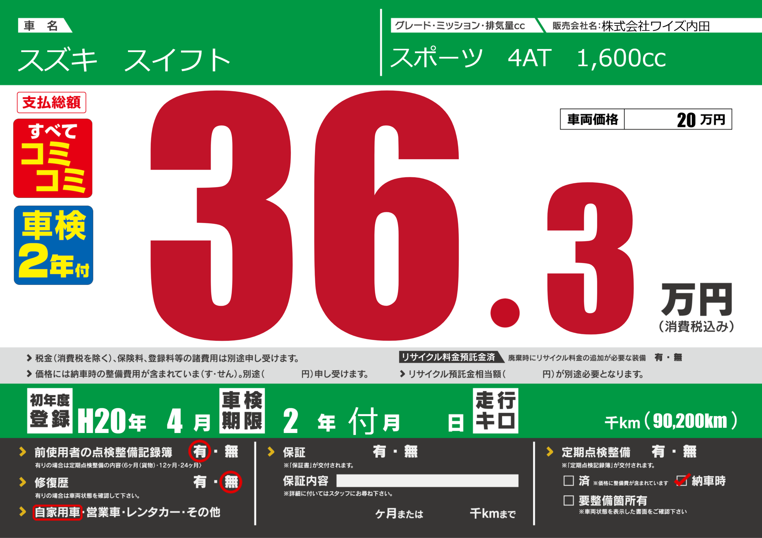 なし | 車検制限 | 2年付月---月 |