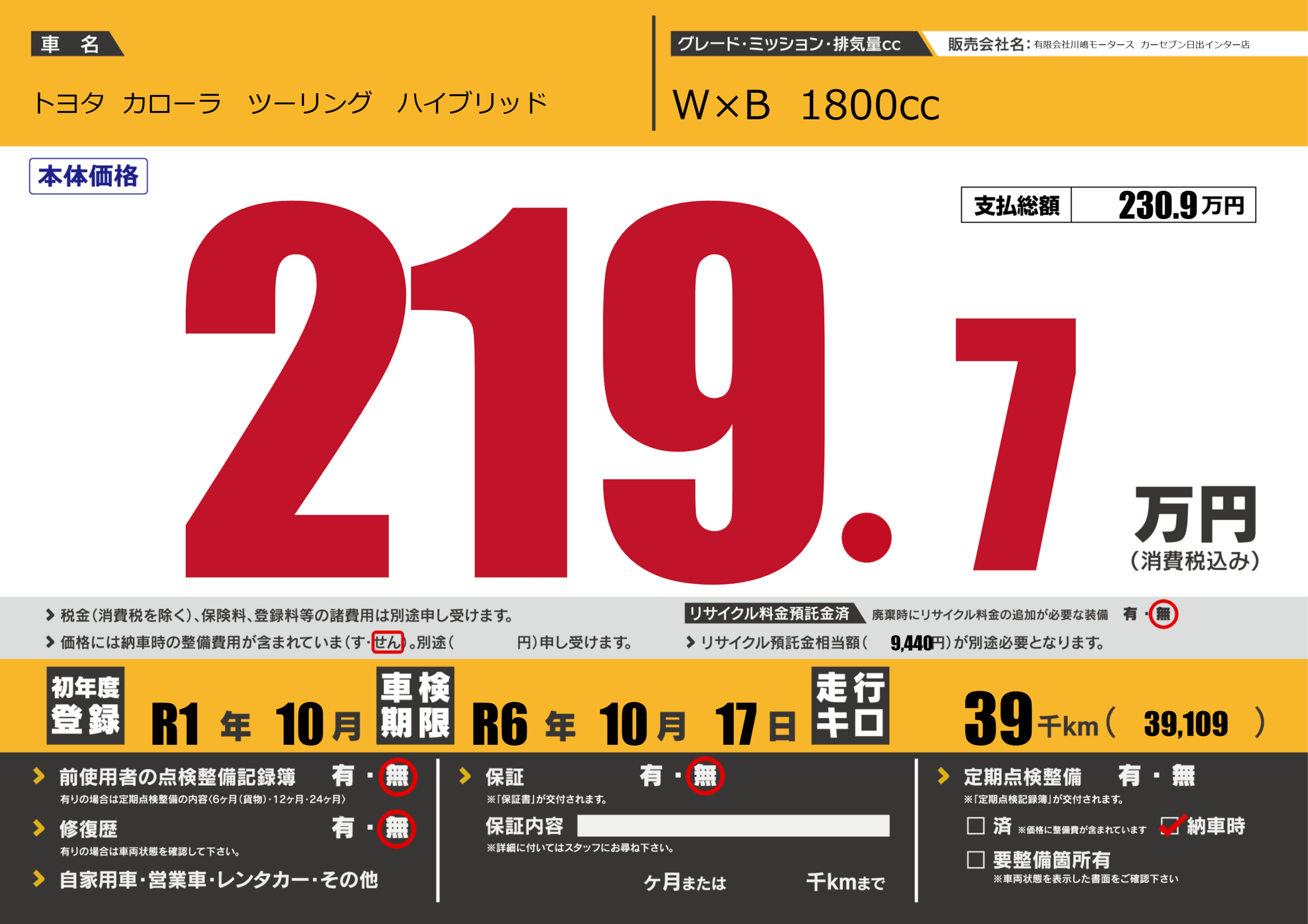| 走行キロ | 3.9万km | ||