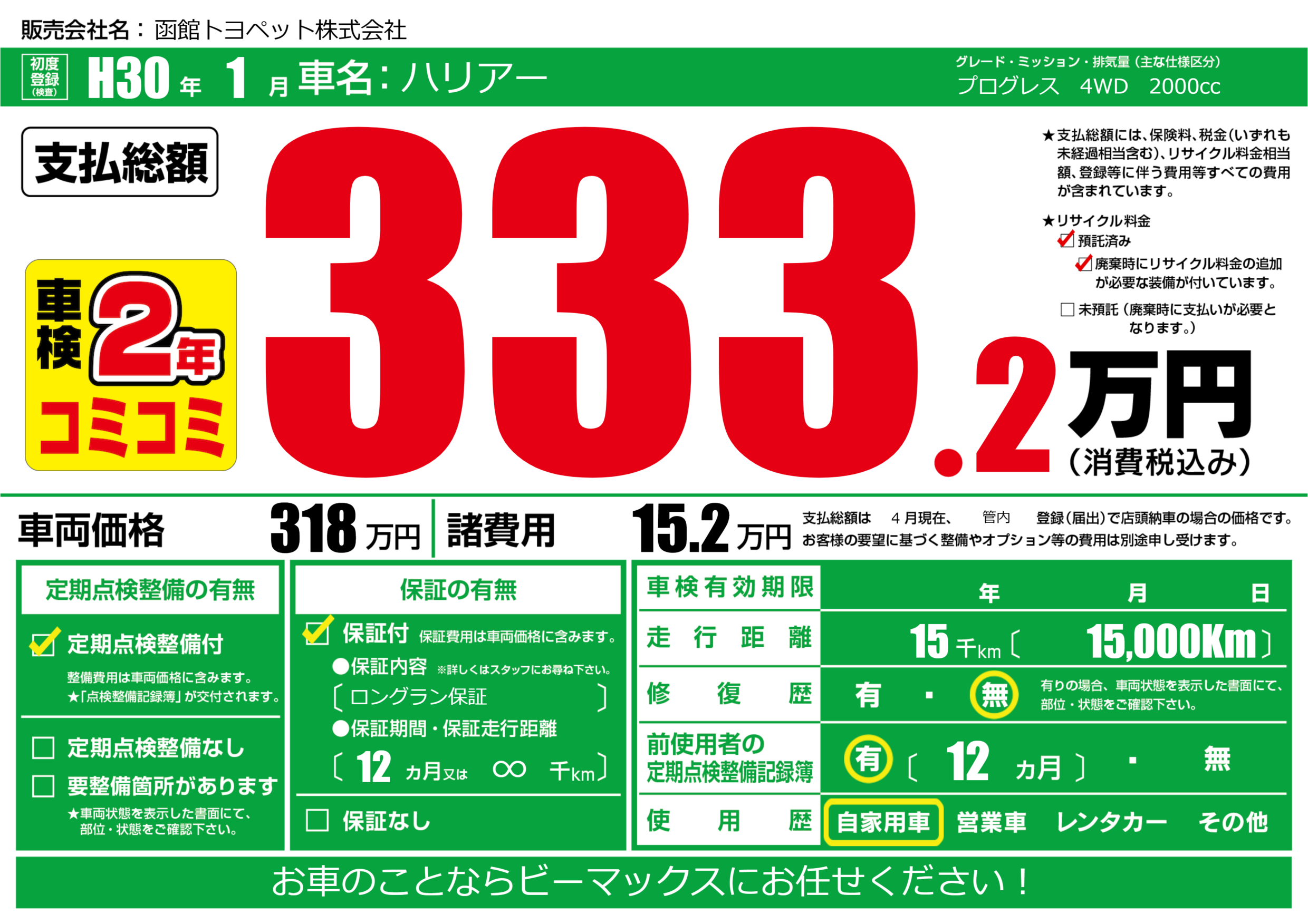 | 車名 | ハリアー | グレード ミッション 排気量 |