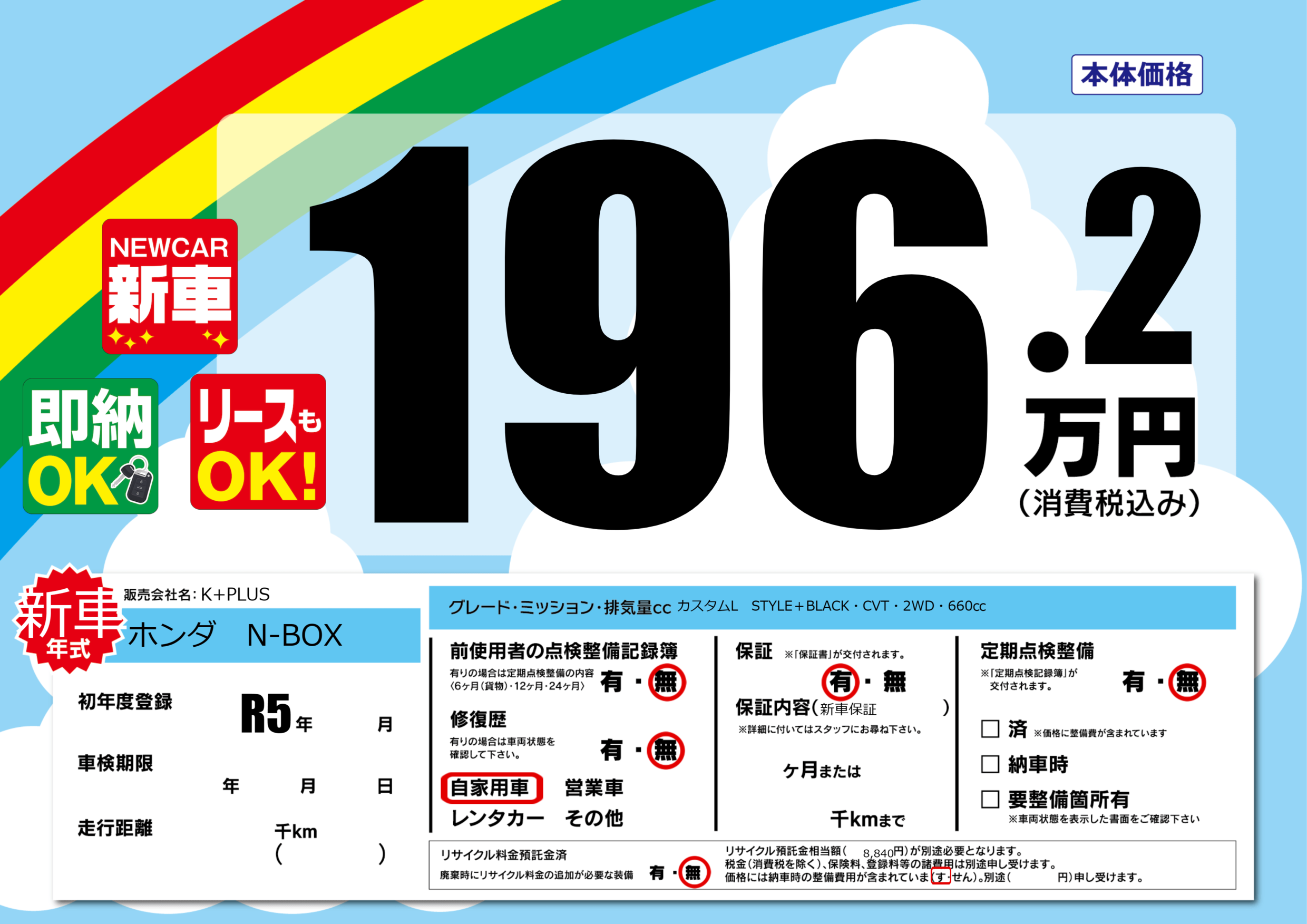 | 車名 | ホンダ N-BOX | グレード ミッション 排気量 |
