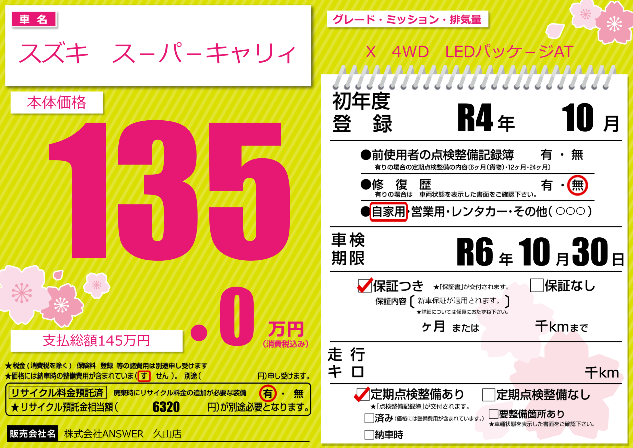 | 車検制限 | R6年 10月 30日 | ||