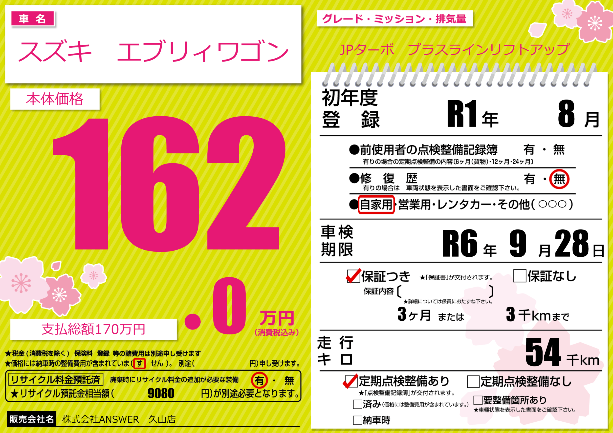 あり | 車検制限 | R6年9月28月 |